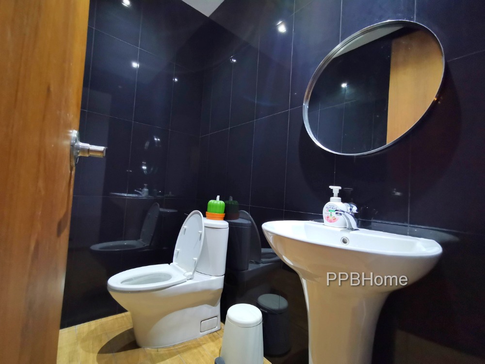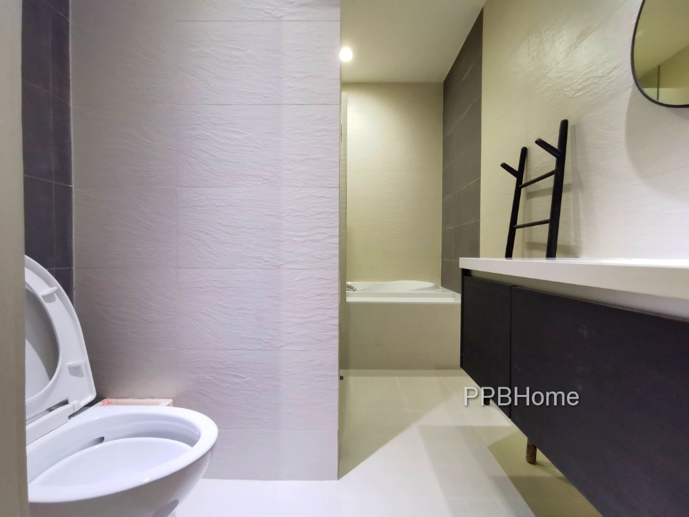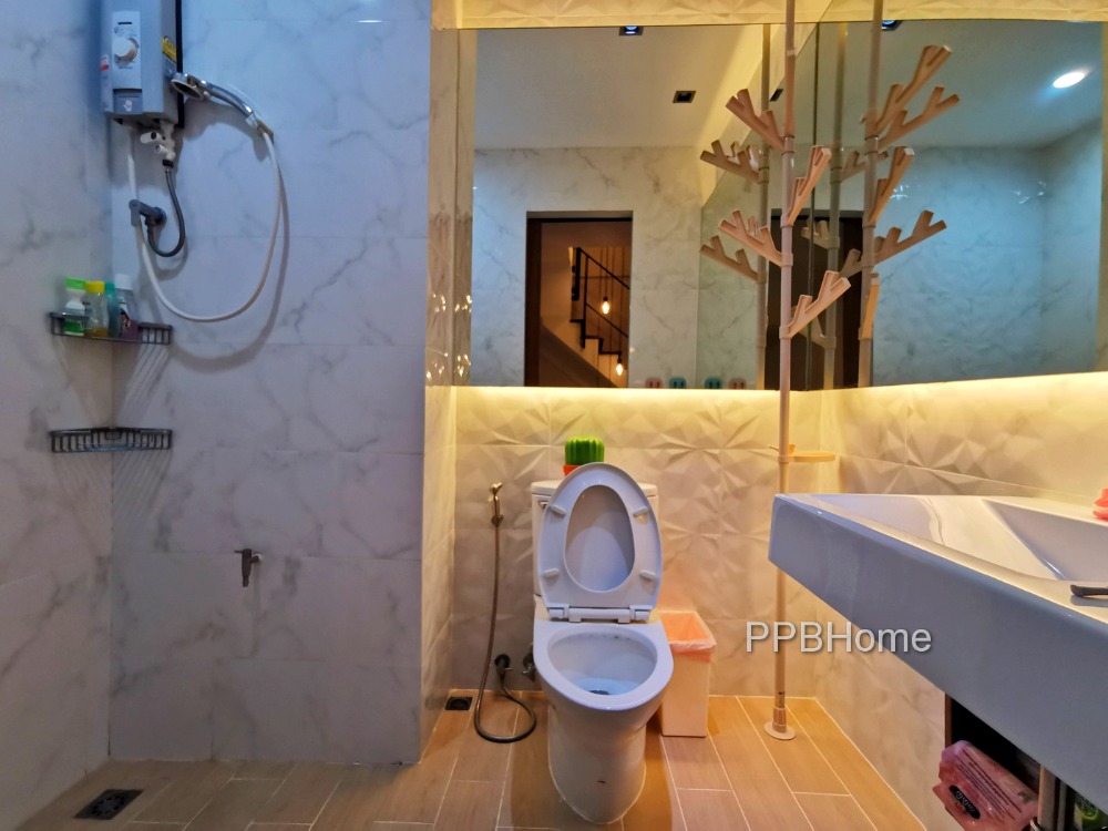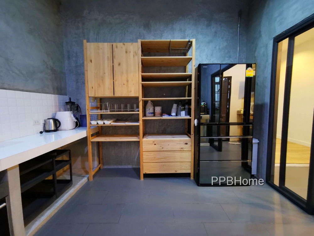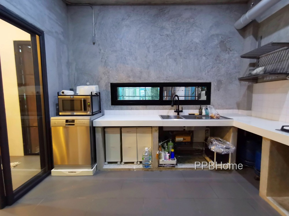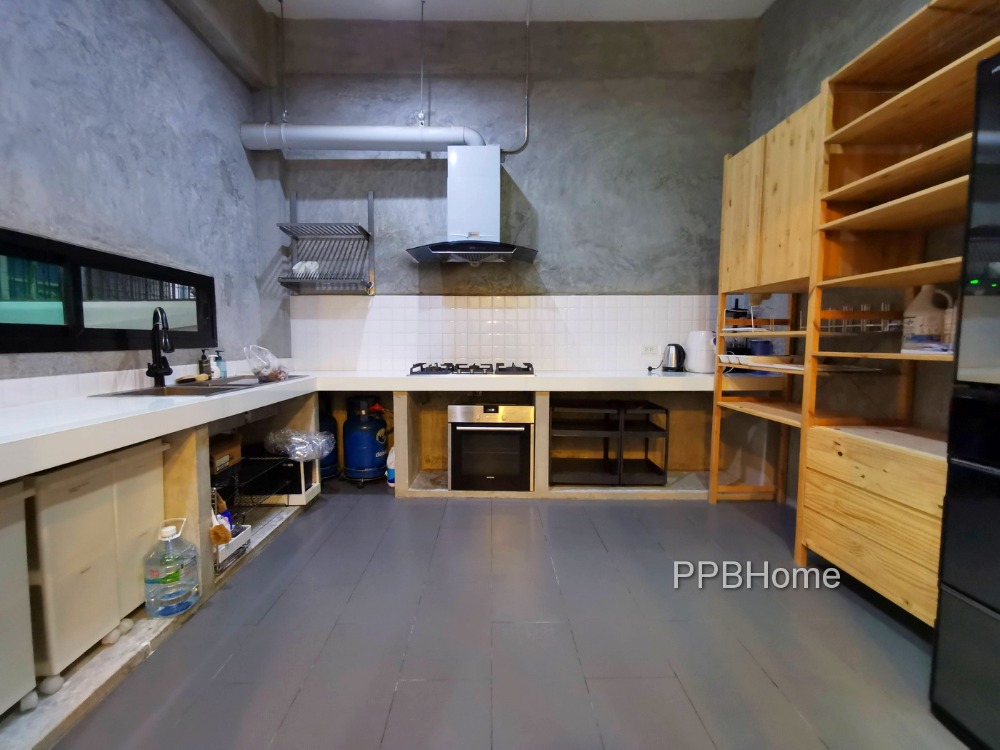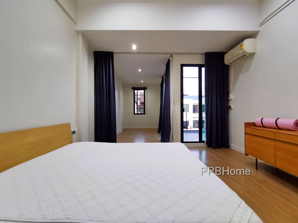 New reno house for rent, 3 floors, ready to live, 330 sq m, 40 sq m. Big house, near the main road, from the mouth of Soi On Nut 12, only 500 m.