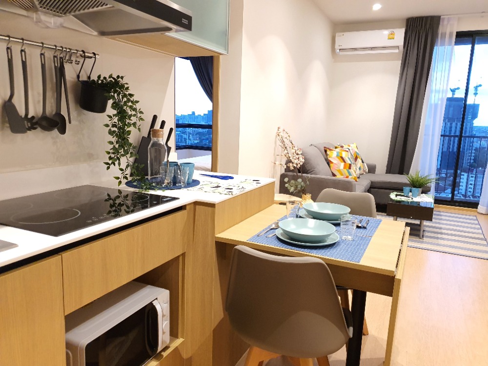 🛌 2 Bedrooms 🚿 1 Bathroom 🏬 18th Floor 📏 Size 53.50 Sq.m. One year contract : Rental Price 40,000 THB / Month 📍 Maru Ladprao 15 conveniently located just within 330 m or about 4 minutes walk from MRT