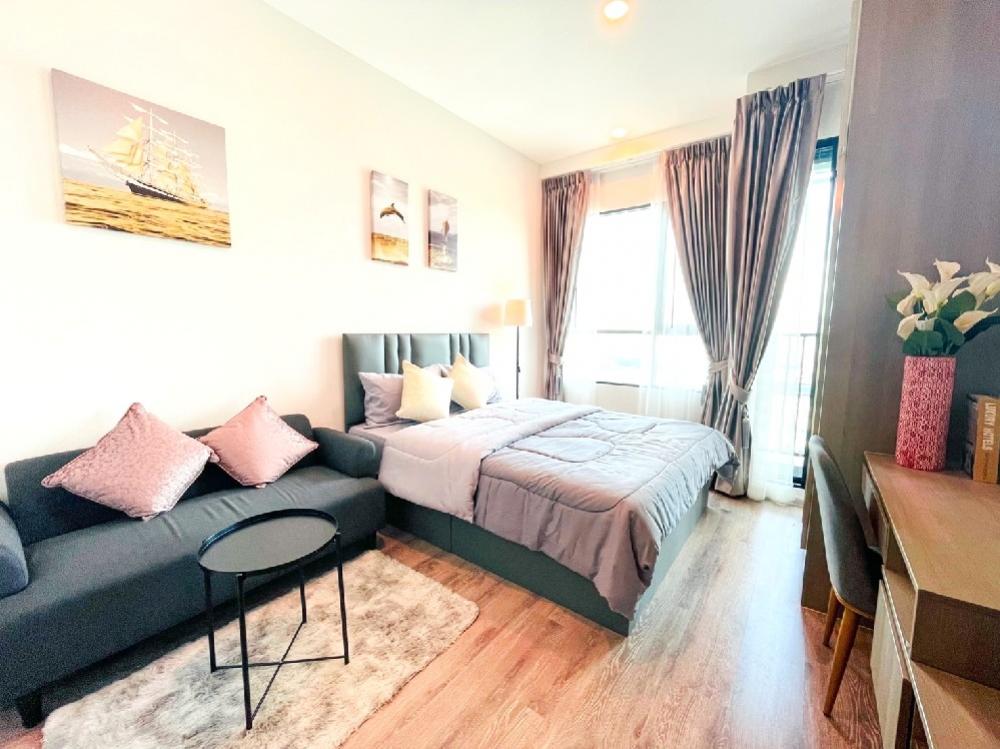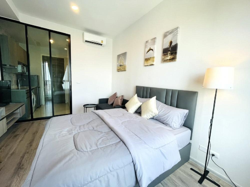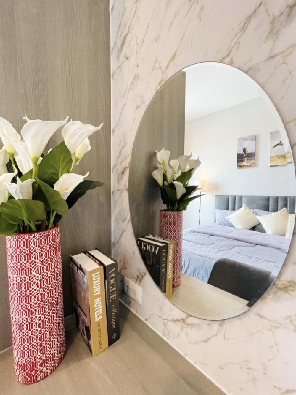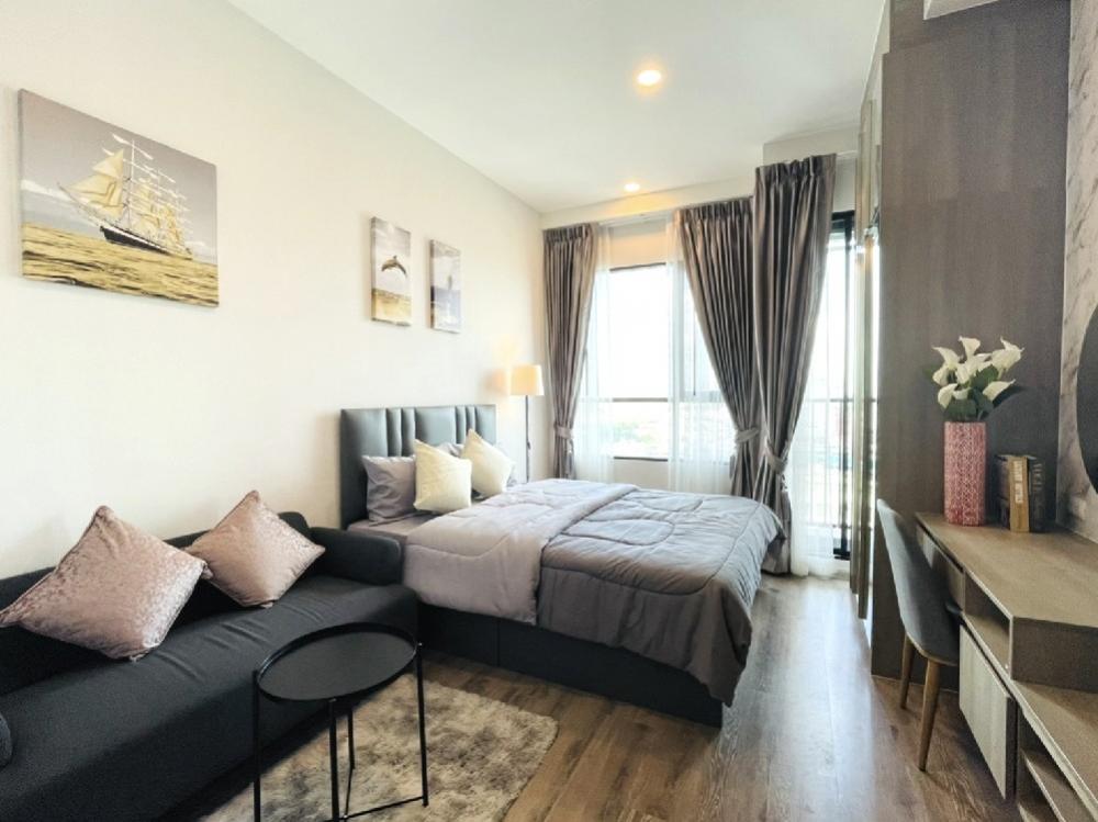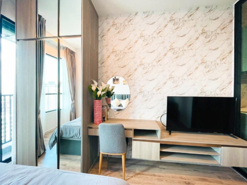 📍 more details :: studio 1 bedroom 1 bathroom Size 23.5 sqm. Floor 25 Ceiling height 3 meters, high, clear, view inside the project, clean and comfortable. Rental fee: 9,500 baht/month (including comm