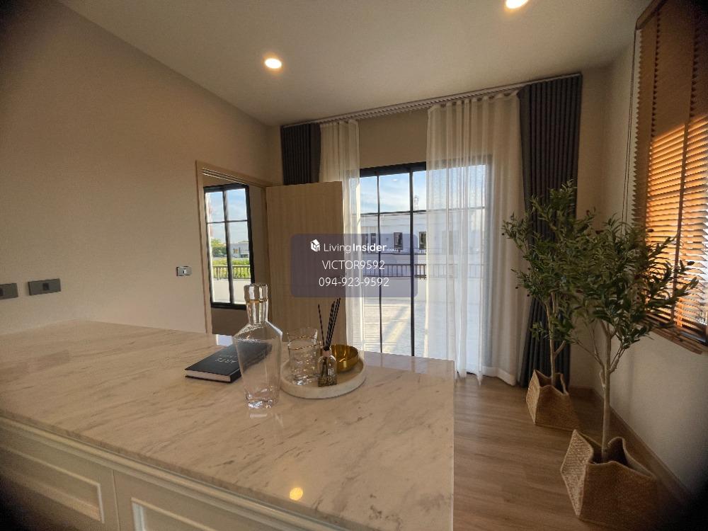 Near Chalong Rat Expressway and Kanchanaphisek Ring Road , Modern European style detached house under the concept of "Flexible Area" that allows residents to Choose to modify the use according to your needs, whether it can be adjusted to be an office room, a private movie room, an In-House Fitness gym or a reading room together with the children's homework room and comes with Flexible Function that can be adjusted. Turn on-off the area of use. Add more privacy when closed or choose to open to expand the happiness area of everyone in the house at the same time ## Additional details - Function 5 bedrooms / 4 bathrooms / 3 parking spaces (1 Maid room) - Door facing south ## Facilities - Garden in front of the project, CCTV system, Key Card Access, underground wiring ## Nearby landmarks such as **Shopping Mall and Market** - Max Value Khubon ~ 2.7 km. - Big C Market Khubon ~ 4.1 km. - Panya Village ~ 4.6 km. - The Promenade Lifestyle Mall ~ 5 km. - Fashion Island ~ 5.2 km.- Amorini Mall ~ 6.9 km. - Liab Duan Market ~ 7.5 km. - Ease Park ~ 8.3 km. - The Walk Kaset-Nawamin ~ 10.3 km. - Central Plaza Ramintra ~ 12.8 km.- Central Festival East Ville ~ 13.1 km. - Crystal Design Center ~ 12.4 km. **School** - Nawamin School Rachinuthit Benjamarachalai ~ 5.9 km. - Sai Aksorn School ~ 6 km.- Satit Pattana School ~ 7.3 km. - Benjamin School ~ 9.2 km. - Sarasas Witaed Saimai School ~ 9.4 km. - Setthabutbamphen School ~ 9.8 km.- Lertlah School, Kaset-Nawamin Road ~ 10.8 km. - Rattanakosinsomphot Bangkhen School ~ 10.9 km. - NIDA ~ 13.7 km.- Bodindecha School (Sing Singhaseni) ~ 17.4 km. **Hospital** - Intararat Hospital ~ 4.8 km. - Phayathai Nawamin Hospital ~ 6 km.- Nopparat Ratchathani Hospital ~ 6.7 km. - Synphaet Hospital ~ 7.1 km. - CGH Saimai Hospital ~ 9.2 km. - Nawamin Hospital 9 ~ 10.9 km. **Golf course** - Panya Indra Golf Club ~ 7.1 km. - The Legacy Golf Club ~ 7.8 km.