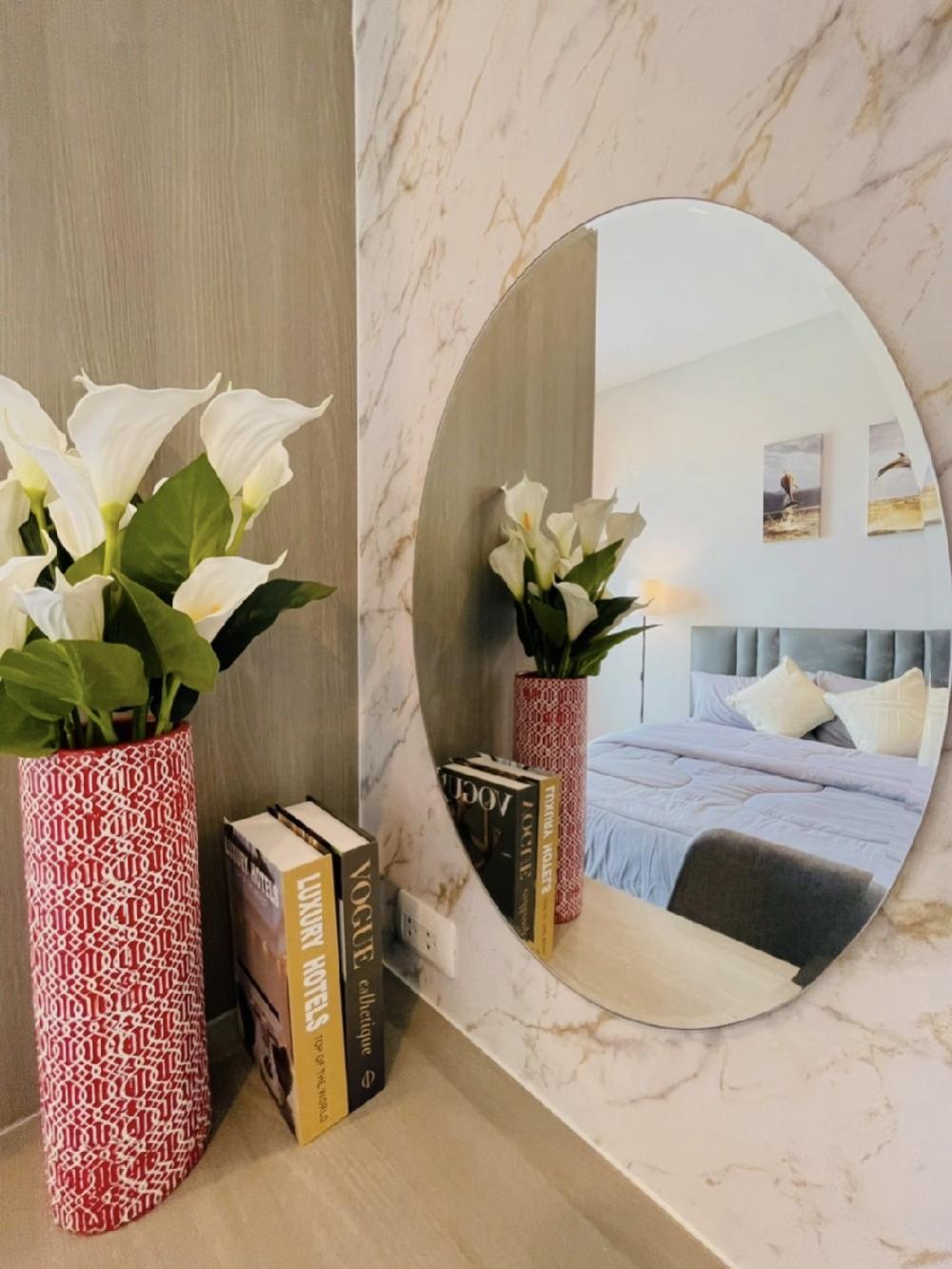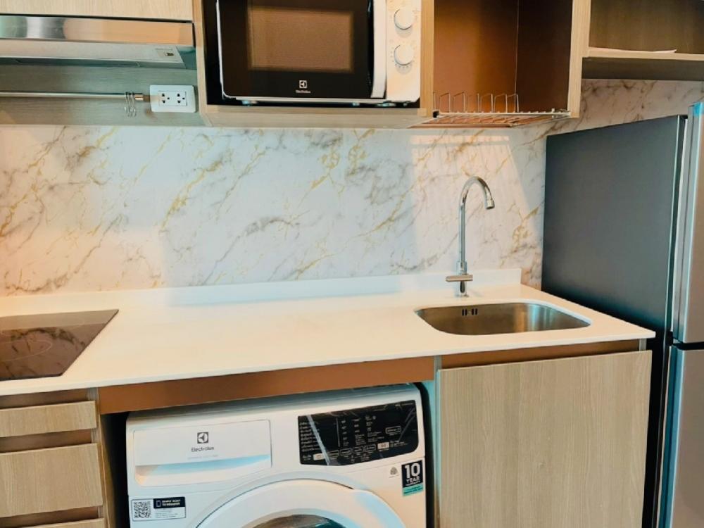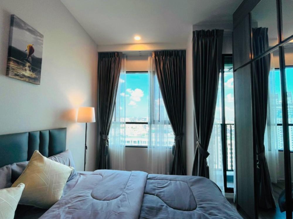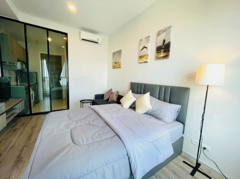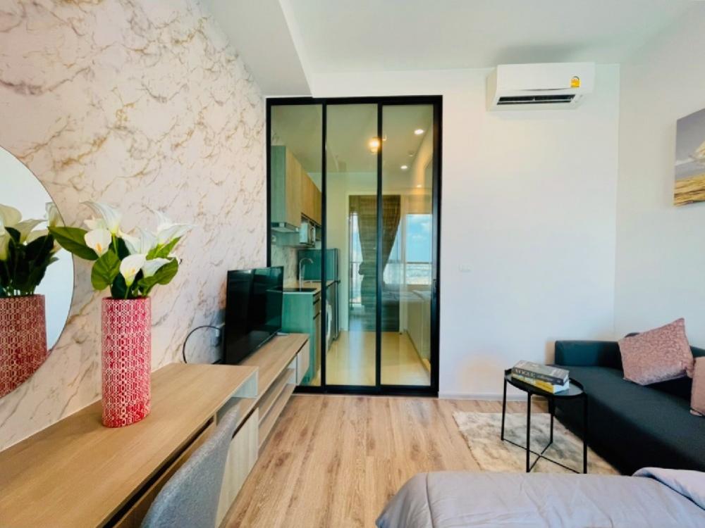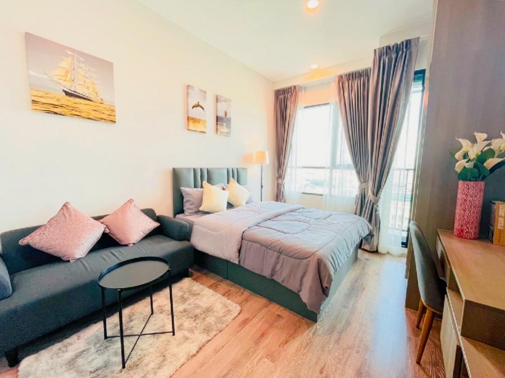 📍 more details :: Studio 1 bedroom, 1 bathroom Size 23.5 sq m. Floor 25 Ceiling height 3 meters, high, clear, view inside the project, clean and comfortable. Rental fee: 9500 baht/month (including com