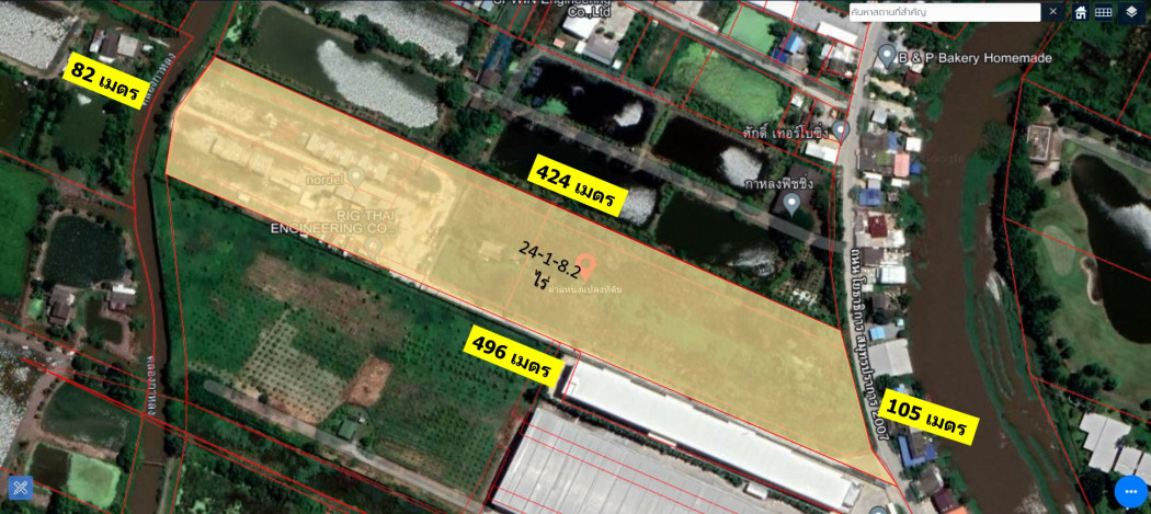 For sale, purple land plot near Lat Krabang, Suvarnabhumi Airport, 24-1-8.2 rai, suitable for factories, warehouses, companies Highlights: - Square-like land plot, easy to use - Already has Factory 4 - Land filled in 12 rai - 8 minutes to Motorway (Highway 7) - 19 minutes to Suvarnabhumi Airport - 10 minutes to Asia Suvarnabhumi Industrial Estate Land details - Area 24-1-8.2 rai - Road width approximately 105 m - 2-lane road - Purple plan (can build a factory) - Land on the road Yotha Thikan Samut Prakan 2007 (Khlong Chao Road) which connects Luang Paeng Road and Bangna-Trad Road ** Selling for 157,758,250 baht ** ( 6.5 million per rai ) Location: Yotha Thikan Samut Prakan 2007 Road, Prang Subdistrict, Bang Bo District, Samut Prakan Interested, contact Tel: Contact number LINE ID: Doze Email: Contact email Accepting houses, condos, land and all types of real estate for sale with a different method. If it doesn't sell, no charge!!