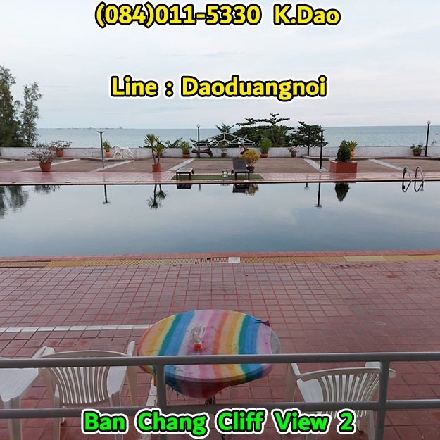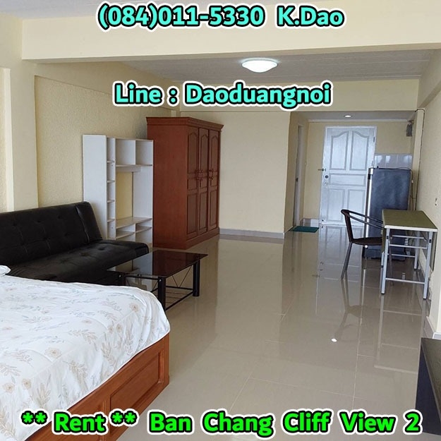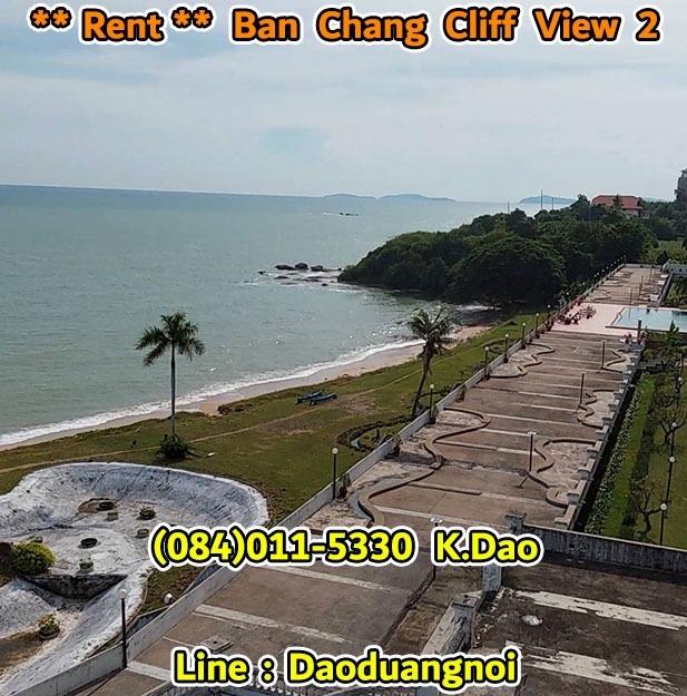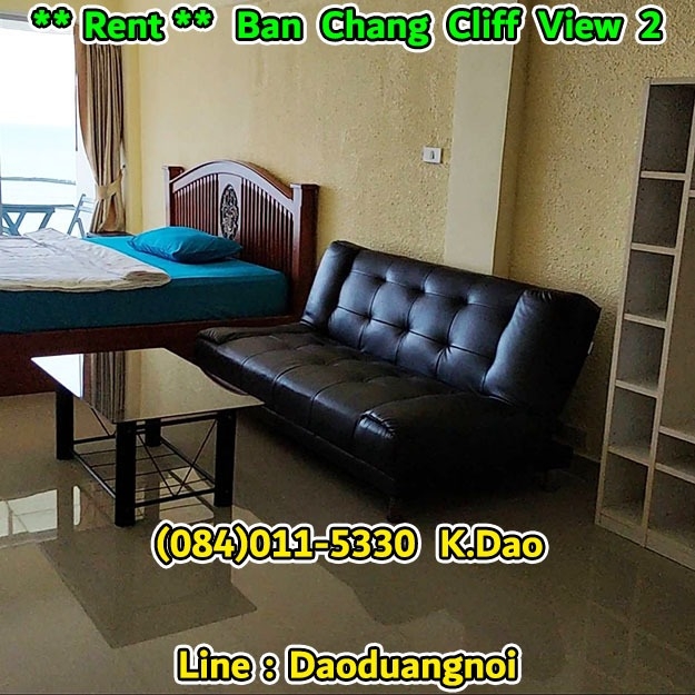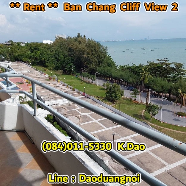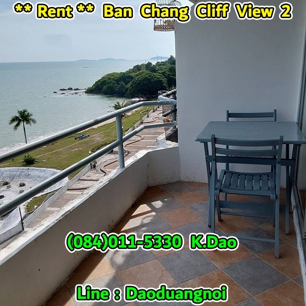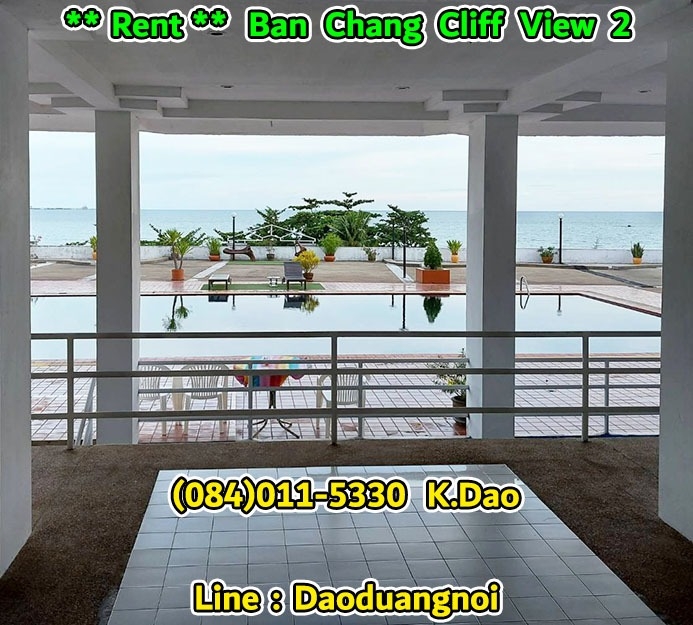 +++ For Rent +++ Ban Chang Ban Chang Cliff View 2 Close to the Beach. *** Sea View *** +++ Pool View +++ *** Mountain View *** Location : https://goo.gl/maps/12cocrAY8qnRec3CA 5th Floor Area 45 Sqr.m. Studio Type 1 Bedroom 1 Bathroom 1 Built-in Kitchen 1 Dining Area 1 Living Area 1 Library Area 1 Balcony Coffee Table & Chairs on the Balcony Fully Furnished Ready for Moving in. +++ Rental Fee 6,500 Baht +++ Facility - Swimming Pool - Parking Lot - Security - Lobby with Scenery - Juristic Person Expat Community Convenient to go to Map Ta Phut Industrial Estate and Motorway. Contact for renting with Dao. Tel. : (084)011-5330 Line ID : Daoduangnoi WhatsApp : Contact number https://www.facebook.com/ThePastelProperty