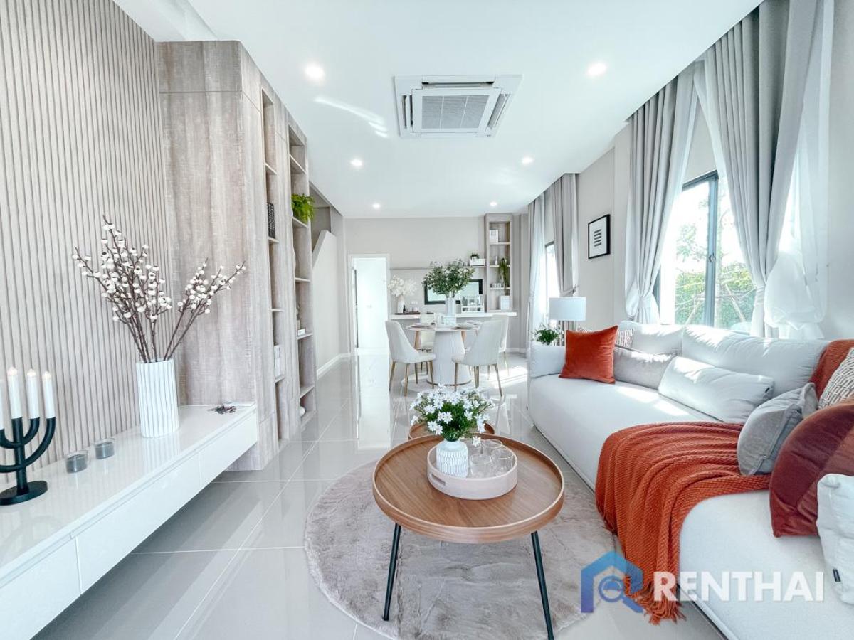 Listing code: #RT0958 2-storey detached house in modern tropical style, beautiful mountain views in Pattaya, good atmosphere, far from the chaos. just far from comfort It is also close to Jomtien Beach, Ban Amphoe Beach, and Bang Saray Beach. Traveling is very easy, close to the expressway, accessible to many routes. The road is wide and pleasant and in this area is not flooded. Starting price: 4,600,000 baht - 3 bedrooms, 3 bathrooms - Land size 37 sq.w. - Usable area 179 sq.m. - 2 floors - Garden view - Thai quota - Without furniture Facilities: - Private Garden - European kitchen - Bathtub - Fitness, Gym - Car Parking - Covered Parking - Security 24/7 Location: Huai Yai, Pattaya For more details feel free to contact us by Tel: Contact number WhatsApp: Contact number Line ID: minehappiness https://line.me/ti/p/4FWcxgo_eM (click the link to add line) ……………………………………………………………………… Website: https://renthai.com Facebook Page: https://www.facebook.com/renthai.pattaya Line Official: @renthai Email: Contact email Renthai - your reliable assistant in buying, selling and investing in real estate in Pattaya.
