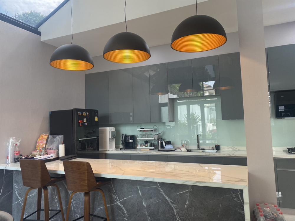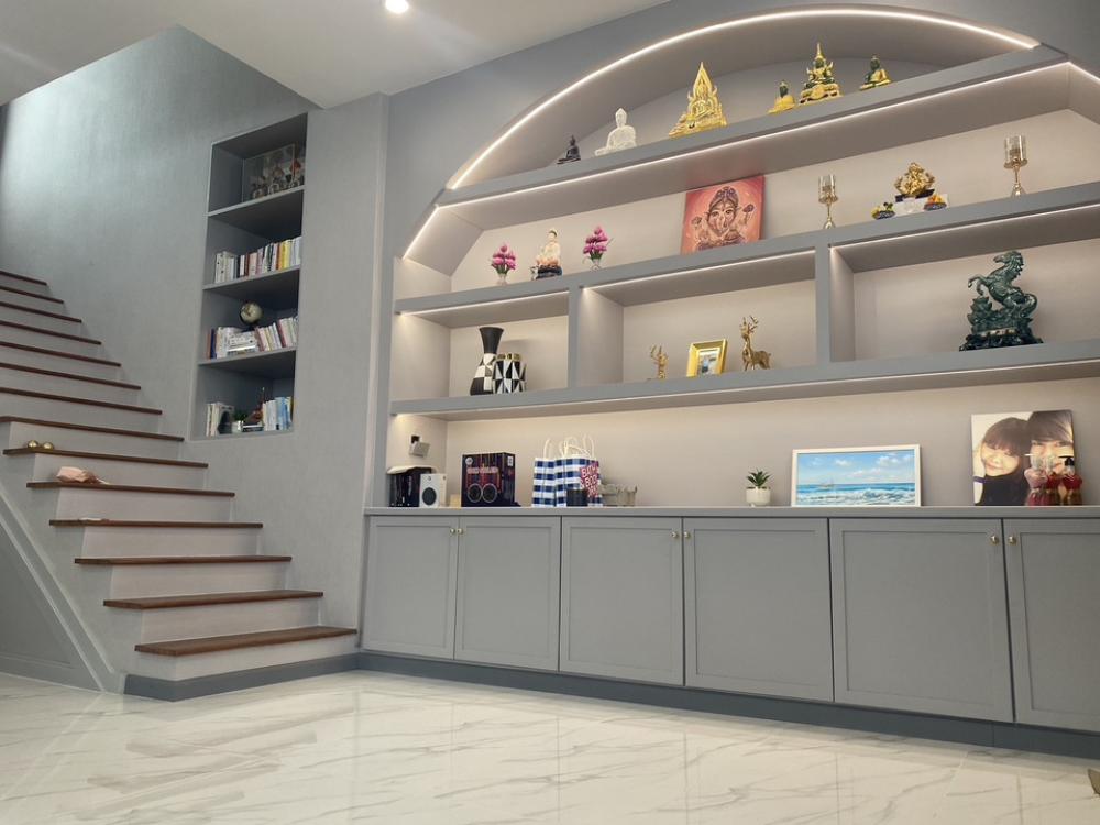 3-storey detached house, Eton project, Ramintra Soi. Ramintra 62, 800 meters from Ramintra Road, near Fashion Island department store. 3 bedrooms (all en-suite bathrooms), 4 bathrooms, master bedroom