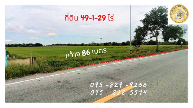 Land for sale 49-1-29 rai (19,729 square wah) next to public road 12 meters near Shinawatra University, Thaicom Station, Bang Kruai-Sam Khok, Pathum Thani Province Suitable for doing business: building a large factory build a large warehouse distribution center furniture factory Public utilities, electricity, water supply, with convenient entrance-exit Next to the public road, 2 garden lanes, 12 meters (rural road 3047 Lam Lat - Lat Bua) land plot environment It is a rice field, good atmosphere, clear air, natural. convenient transportation Characteristics of land plots - Width 86 meters, depth about 715 meters, in front of the plot next to public roads, electricity, water supply ready land plot location Tambon (Bang Kruai Tai), Bang Toei, Sam Khok District, Pathum Thani Province nearby places - Shinawatra University - Thaicom Station - Sam Khok shooting range - Rajasri Shooting Range - Bang Toei Police Station, Village No. 1 - Chedi Hoi Temple - Wat Ratbamrung (Wat Nong Pla Duk) convenient transportation - Rural Road 3074 (Lamlad-Ladbua) - Highway 346 - Tanglong Road 347 - Rangsit-Pathum Thani Road - Kanchanapisek Road 9 selling price 54,254,750 baht/rai 1,100.000 baht/square wah 2,750 baht Wanphen Mobile phone and ID: Contact number, Contact number Naris Mobile and ID: Contact number Wealth Success Real Estate Company Limited Selling houses, land, condos, real estate of all kinds We service with a team of professionals 4289,6395