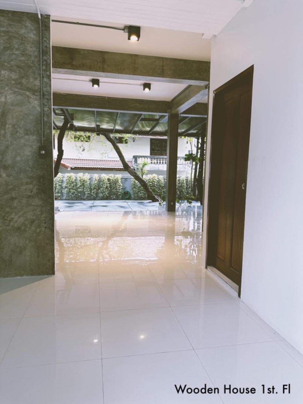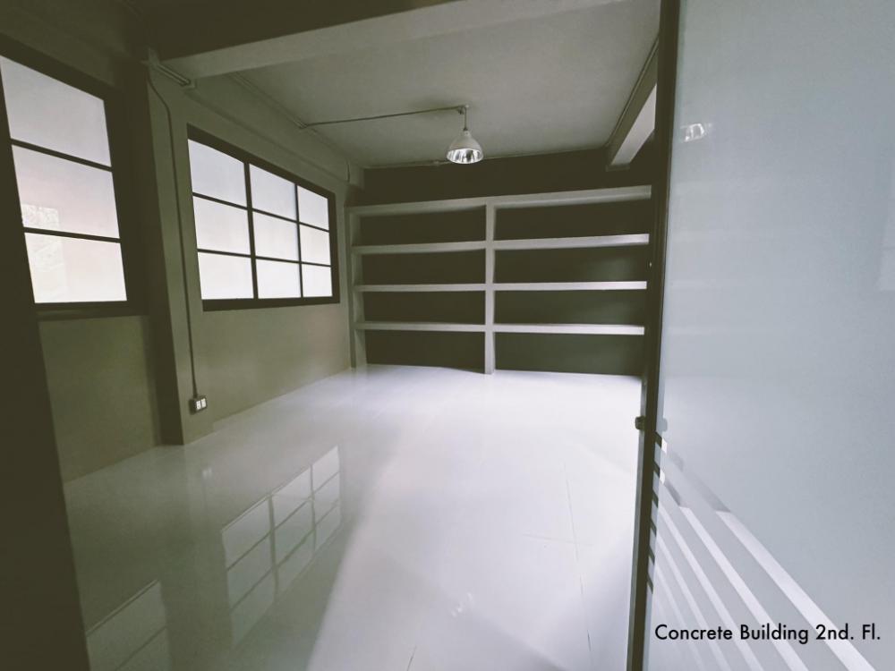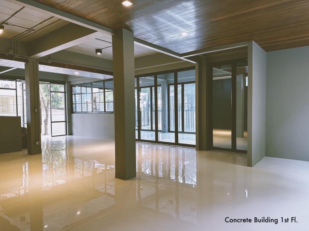 The building in front is a 3-story cement building with a large staircase to the 3rd floor area and an elevator to take things to the 3rd floor area The house in the back is a 2-story wooden house, 5 offices, 4 bedrooms, 1 maids room , no furniture . You can park 10-16 cars inside the office area and can park another 2 cars outside in front. There are nearby areas that can be rented for additional parking. (Land rent 100 sq m. for additional parking approximately 8,000 baht/month) The road in front of the main office is 6 meters wide convenient for travel. Distance from Ratchadaphisek Road 32 is approximately 1 km. from MRT Lat Phrao 1.5 km. For rent 400,000 baht/month