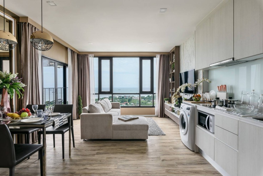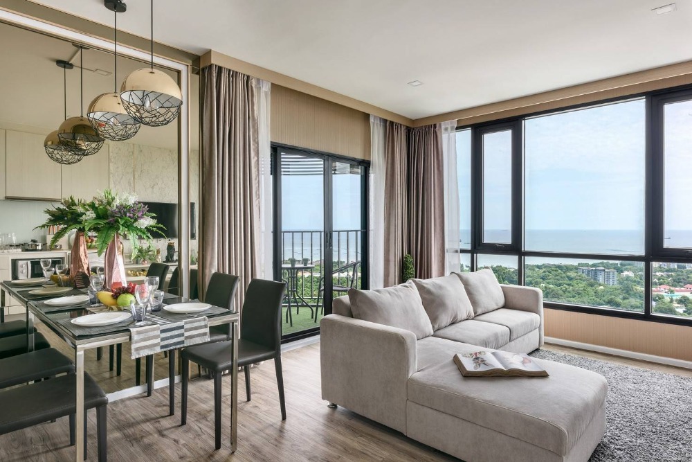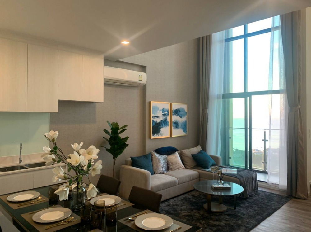 Luxury condo for rent, new room ** 3 bedrooms, 2-storey type, duplex at Knightsbridge The Ocean Sriracha Knightsbridge The Ocean Sriracha Floor 33-34 Corner room, highest floor with sea view in every bedroom and a living room on both floors Usable area 102 sq. m., 3 bedrooms, 2 bathrooms with a Jacuzzi bathtub , a large hall, double colume, 6 meters high L-shaped large kitchen with dining table for 6 people, 2 sea view balconies with air conditioners and fully furnished in every room. with kitchen equipment, 2 LED TVs 55 inches, large refrigerator, washing machine Minimum 1 year contract 2 months damage insurance 1 month advance rental Monthly rental Super special price reduction from 55,000 baht to only 40,000 Welcome the Chinese New Year and Valentine's Day 2023 (ends on 28 Feb. '66 only). Before the end of the special promotion Tel. Contact number