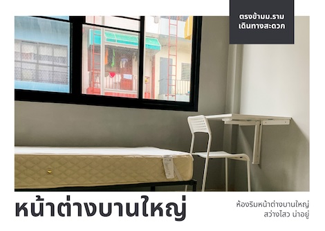 Ramkhamhaeng Dormitory Nice new female dormitory, opposite Ramkhamhaeng University, 51/2, at the mouth of the alley, there is a Ramkhamhaeng station.