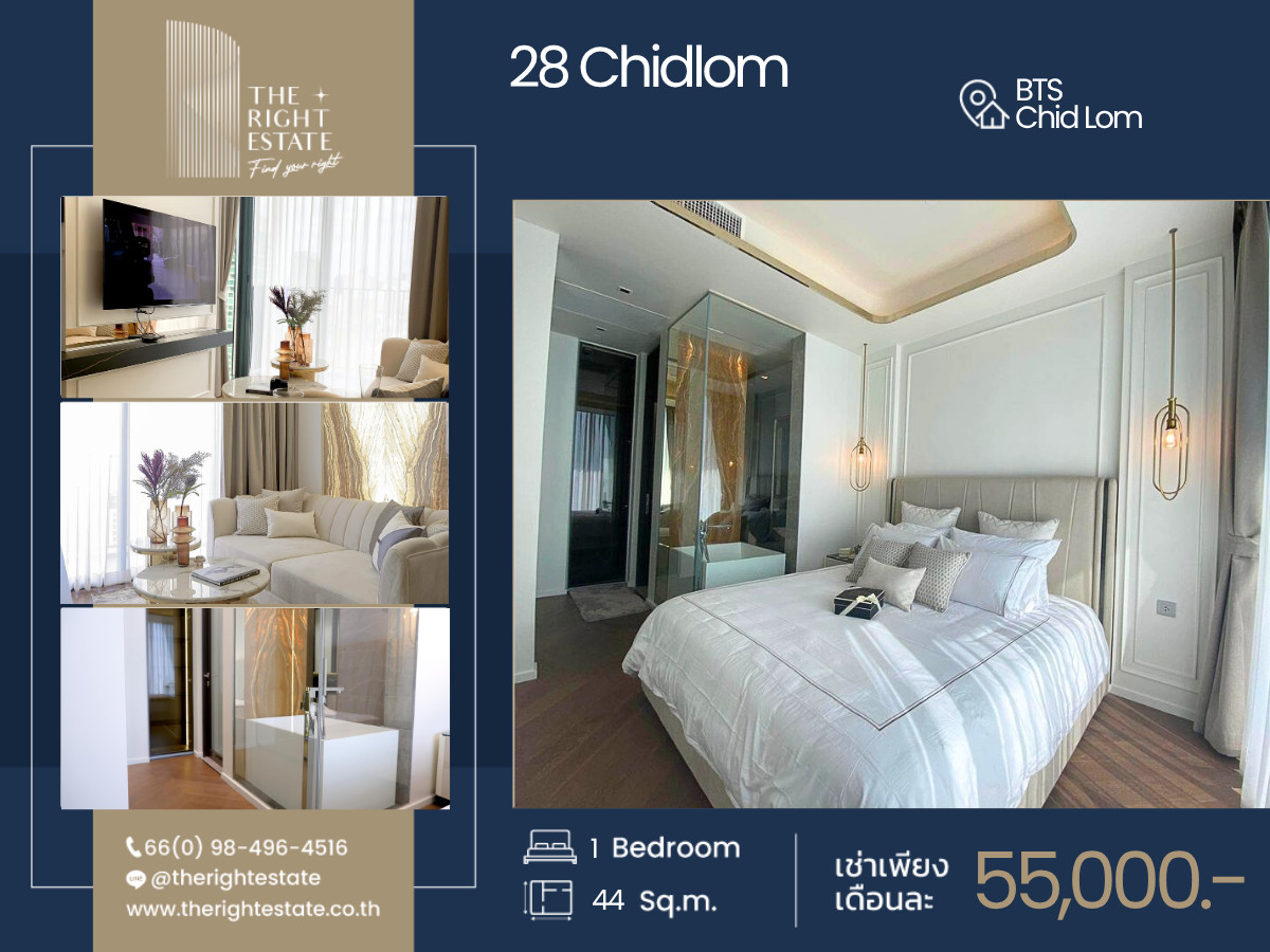 [For Rent] Condo - 28 Chidlom - AQ0018 ▪️ Location:BTS Chid Lom Area:45 Sq.m Floor:25 Type:1 Bed 1 Bath Rental fee:55,000 Baht/ Month (Negotiable) ▪️位置:BTS Chid Lom 面积: 45 平方米 楼层:25 层 类型:1 卧室 1 卫生间 租金:55,000 泰铢/月 (可谈) -------------------------------------------------------- ❝ บริการ รับฝาก ขาย-เช่า บ้าน คอนโด อสังหาริมทรัพย์ ❞ Renting and selling service for your own properties 为您提供房产服务 买卖-租房 -------------------------------------------------------- ✒️ สนใจติดต่อนัดชมห้อง : contact us to view more units : 联系方式: Phone no : 098 l 496 l 4516 [Nano : Thai/Eng] Phone no : 086 l 383 l 8689 [Man : Thai/Eng] Line ID. : https://page.line.me/therightestate Whatsapp ID : Contact number WeChat Id : wxid_zl7fk5jvzs6m12 Co-Agent ติดต่อ : https://lin.ee/CPDovxy Facebook : https://www.facebook.com/therightestate/ Website : www.therightestate.co.th Check available units : https://www.therightestate-stock.com/ -------------------------------------------------------- 𝙏𝙝𝙚 𝙍𝙞𝙜𝙝𝙩 𝙀𝙨𝙩𝙖𝙩𝙚, 𝙁𝙞𝙣𝙙 𝙮𝙤𝙪𝙧 𝙧𝙞𝙜𝙝𝙩