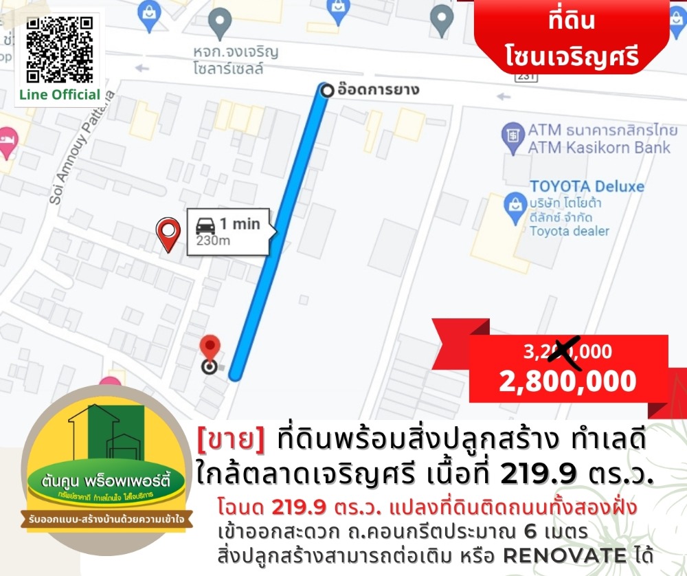 [Sell] Land with buildings, good location, near Charoensri Market, area 219.9 sq.w. [Code TK-1944-B257] Highlights: 📣 Plot of land, only 230 meters from the main road, near Toyota Deluxe. and Charoensri Market ✅ Land title deed 219.9 sq.wa. Plot of land on both sides of the road ✅ L-shaped land, about 19 meters wide, suitable for opening a company. and build a warehouse ✅ Easy access in-out Concrete road about 6 meters wide ✅ There are buildings. Can be reused or renovate Coordinates: https://maps.app.goo.gl/rFHFokFMR4Aoroev7 Nearby places: Charoensri Market (1 kilometer), Makro Warin (1.7 kilometers), Lotus Warin (1.8 kilometers) Sale 2,800,000 baht (ownership transfer costs half) 📢 Interested in making an appointment to see the house / land, chat with Line Official: http://line.me/R/ti/ p/%40rjg7947j -------------------------------- or contact for more information ☎️: Contact number (Chet Tonkoon) Line: @ubonproperty ☎️: Contact number (TonKoon) --------------------------------