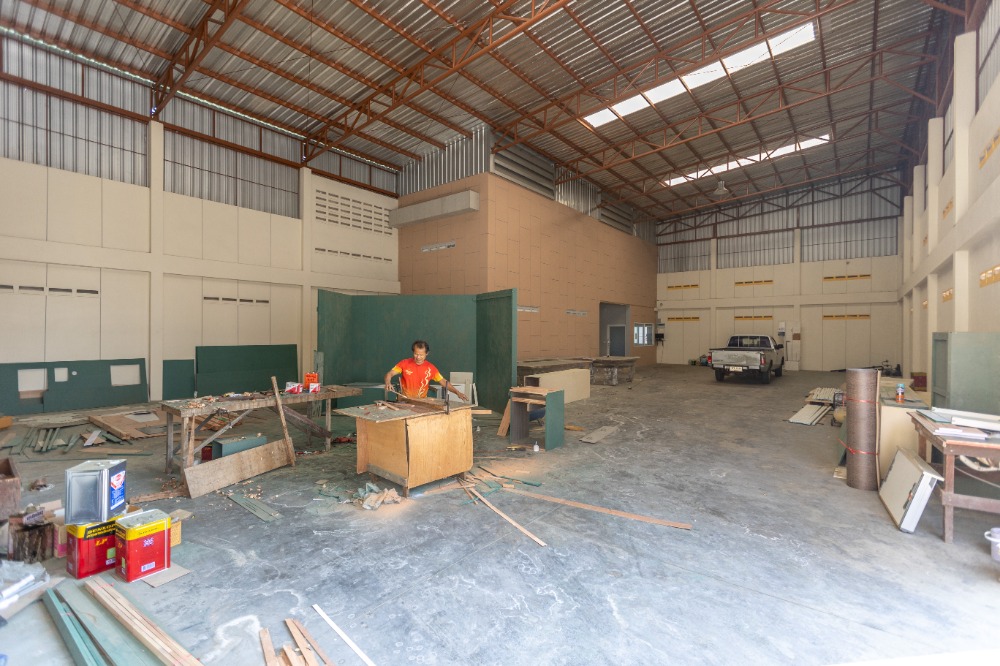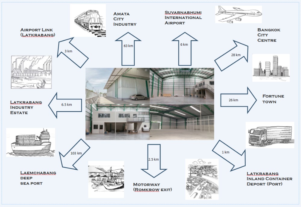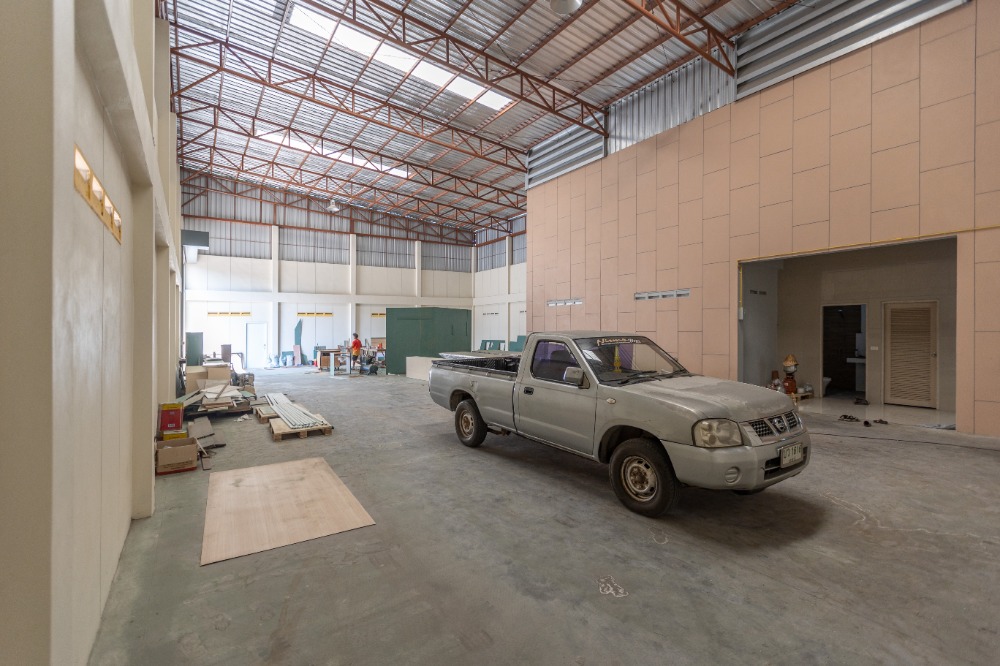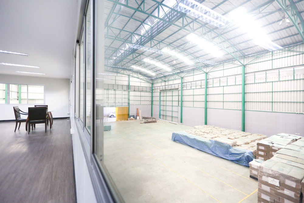 Location / Address: Soi Rom Klao 23, Khwaeng Khlong Sam Prawet, Khet Lat Krabang, Krung Thep Maha Nakhon 10520 Location: https://goo.gl/maps/eAPpCgRnGYKeF6P87 Warehouse 3 (available): Total Warehouse Area: 857 sqm Office Area: 80 sqm Price: 150 Baht / Sqm Price = 55,125 THB/month - The warehouse structure is made out of metal, covered with a thick layer of the metal sheet. It is also suited with a proper air circulation system. - The floor is framed with metal covered with concrete and can support up to 2.50 tons per square meter. - There is no pole at the center of the warehouse which will allow a more ease of movement - The walls of the factory have built in cement blocks which help prevent water and other leakages. - The doors are designed to slide right and left - The height of the warehouse from floor to ceiling is 8 meters for the lowest point. - There is a drainage system all around the warehouse - Lights are installed to help illuminate the warehouse whenever needed - There are surveillance cameras at the entrance and exits of the warehouse - There are multiple parking spots for loading and unloading as needed Kai: Contact number