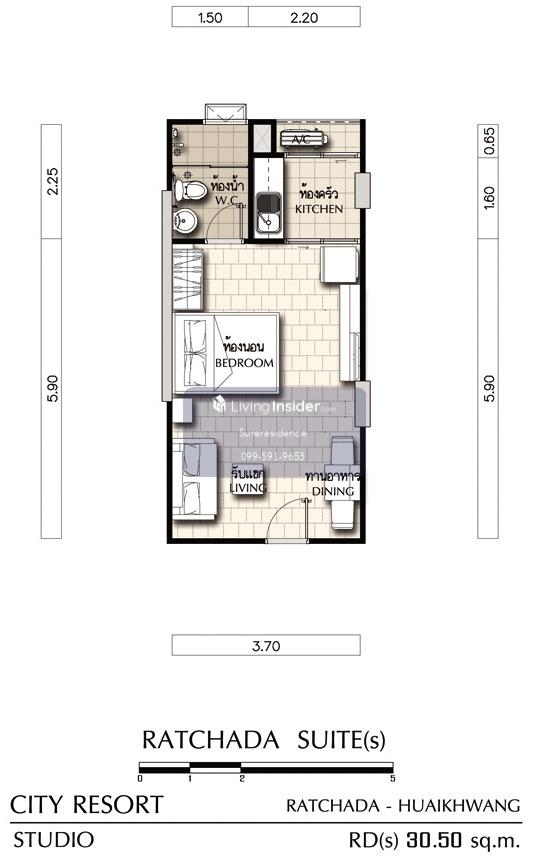 0031-CRH😊😍 For RENT, SELL For rent, for sale Studio room 🚄 near MRT Huai Khwang 🏢Supalai City Resort Huaykhwang 🔔 Area: 30.97 sq m. 065-9423251 ✅LineID:@sureresidence