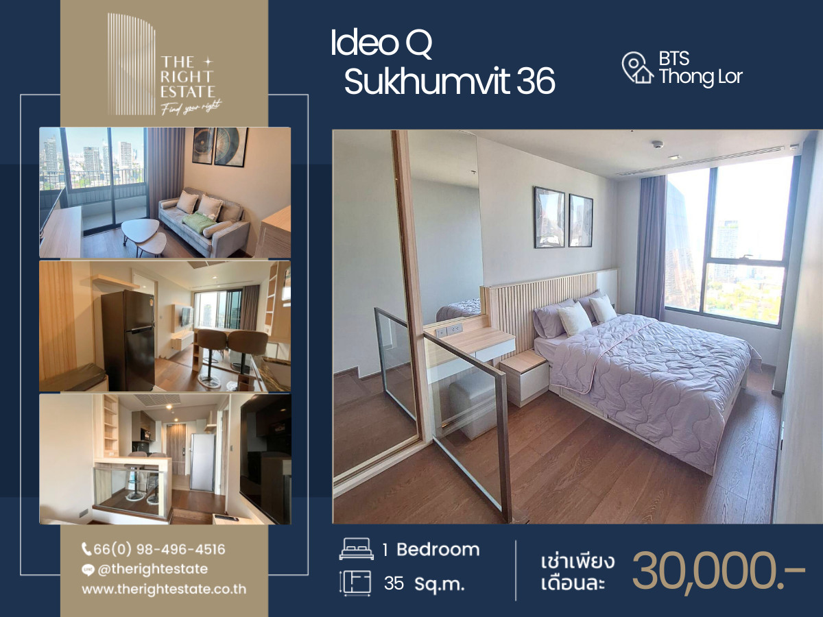[For Rent] Condo - Ideo Q Sukhumvit 36 - ABF0123 ▪️ Location:BTS Thong Lor Area:35 Sq.m Floor:26 Type:1 Bed 1 Bath Rental fee:30,000 Baht/ Month (Negotiable) ▪️位置:BTS Thong Lor 面积: 35 平方米 楼层:26 层 类型:1 卧室 1 卫生间 租金:30,000 泰铢/月 (可谈) -------------------------------------------------------- ❝ บริการ รับฝาก ขาย-เช่า บ้าน คอนโด อสังหาริมทรัพย์ ❞ Renting and selling service for your own properties 为您提供房产服务 买卖-租房 -------------------------------------------------------- ✒️ สนใจติดต่อนัดชมห้อง : contact us to view more units : 联系方式: Phone no : 098 l 496 l 4516 [Nano : Thai/Eng] Phone no : 086 l 383 l 8689 [Man : Thai/Eng] Line ID. : https://page.line.me/therightestate Whatsapp ID : Contact number WeChat Id : wxid_zl7fk5jvzs6m12 Co-Agent ติดต่อ : https://lin.ee/CPDovxy Facebook : https://www.facebook.com/therightestate/ Website : www.therightestate.co.th Check available units : https://www.therightestate-stock.com/ -------------------------------------------------------- 𝙏𝙝𝙚 𝙍𝙞𝙜𝙝𝙩 𝙀𝙨𝙩𝙖𝙩𝙚, 𝙁𝙞𝙣𝙙 𝙮𝙤𝙪𝙧 𝙧𝙞𝙜𝙝𝙩