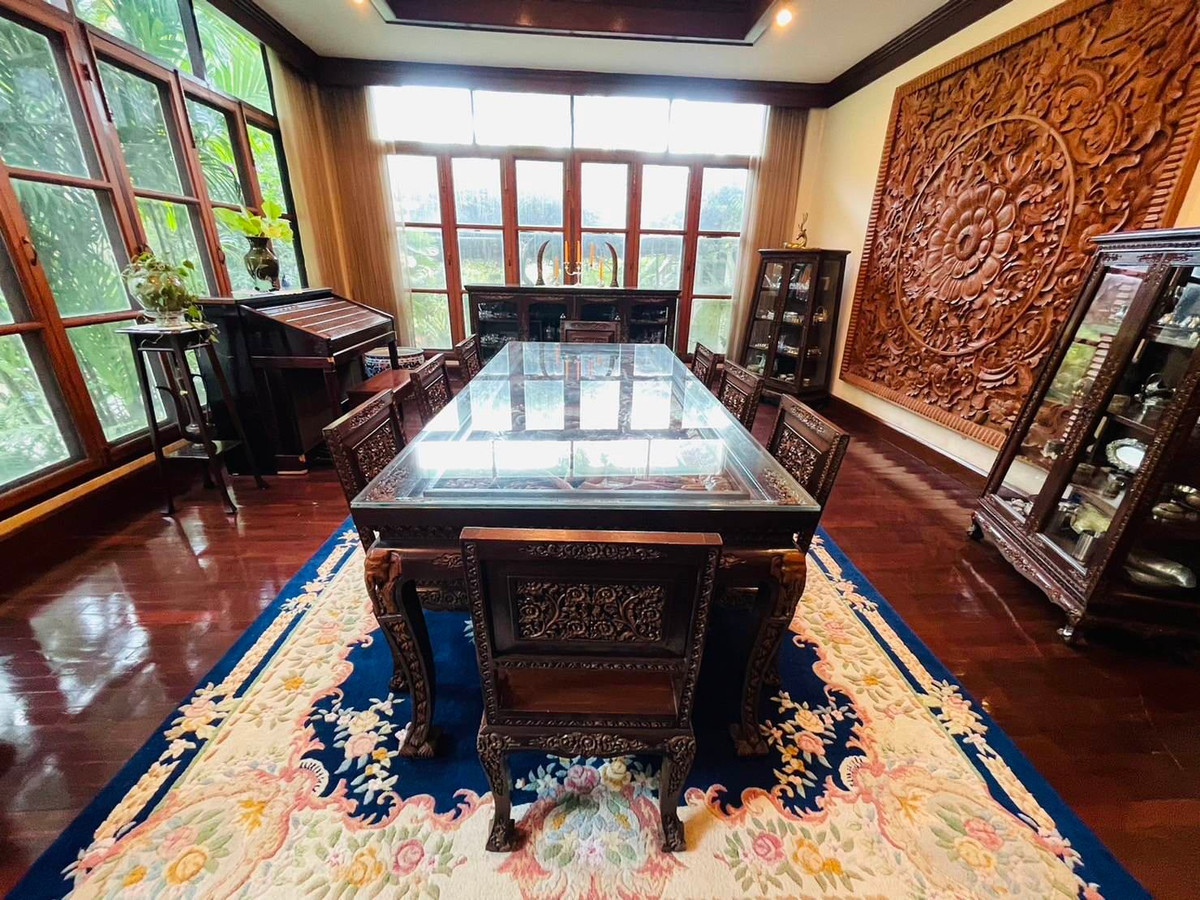 For sale, riverside house, Pathum Thani District (golf course view) 375 sq.w. 4 bedrooms, 4 bathrooms, 550 sq.m. with riverside guest house and maid's room House, perfectly separated **Property details** Riverside house, Pathum Thani District (golf course view) - Area 375 sq.w. - Total usable area 550 sq.m. - 4 bedrooms, 4 bathrooms - 1 Buddha room - 2 living rooms - 1 dining room - and 1 kitchen - 1 guest house by the river (with kitchen, dining room and guest bathroom) - 1 maid's room and 1 maid's bathroom - Parking in the house for 4-5 cars **Highlights** - View of the golf course and the river, the most beautiful and shady - Use good quality wooden furniture, beautifully carved patterns, durable hardwood - There is a riverside guest house (with kitchen, dining room and guest bathroom) and a maid's room with a maid's bathroom Perfectly separated _________ **Location** Soi Ekcharoen, Nawong Pracha Phatthana Road, Lak Hok Subdistrict, Mueang Pathum Thani District, Pathum Thani 12000 Price 17,500,000 baht "Reduced from 25 million baht" (Transfer fee half each) **Nearby places** - Muang Ek Vista Golf Course - Robinson Srisaman, 6.1 Km. - Rangsit University, 2.6 Km. - Bang Pa-in Pak Kret Expressway (Udonratthaya Expressway), 5.1 Km. - Future Park Rangsit, 8.2 Km. - Lotus Rangsit, 7.9 Km. - Makro Rangsit, 5.5 Km. - Rangsit Market, 6.9 Km. - Big C Extra Chaengwattana 2 - Central Chaengwattana - Wongkaew Plaza Market - Chao Phraya River - Pak Kret Intersection - Pink Line ___________________________________________ ******Professional consultation, call / Interested, contact to make an appointment to view the property****** Phone: Contact number Weerames (New) Line: @toplandsofthailand (with @) Email: Contact email