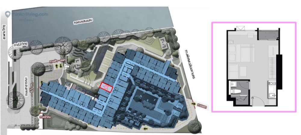 Life One Wireless for Rent (Owner Post) Room 28.5 sq.m. 16th floor, canal view 🍃🍃 🌟The room isn't close to the elevator or garbage room 🔥 - Rental fee: 23,000 / month Minimum contract 1 year (Alr
