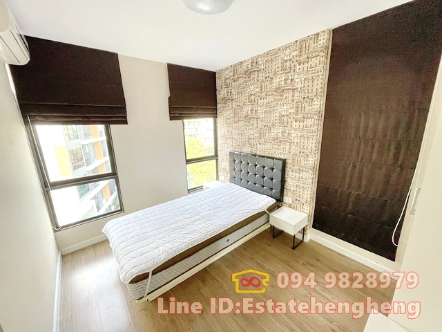 Corner room, very beautifully decorated, 5th floor, Building D, very spacious usable area, not cramped, more than 49 sq m. There are 2 bedrooms, 2 bathrooms, 1 living room, kitchen area, balcony, swimming pool view, parking for 2 cars