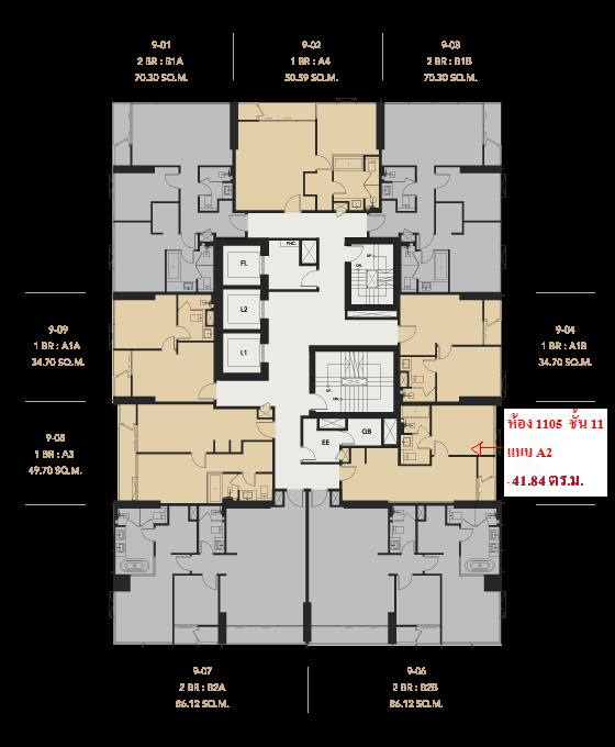(Owner) Rent / Sell Condo CELES ASOKE 1 bedroom 1 bathroom *** Special price *** Project name: CELES ASOKE Unit number: 1105, 11th floor, type A2, room type: usable area 41.84 square meters, 1 bedroom