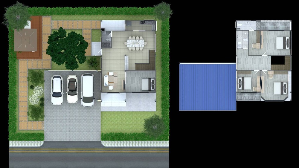 Chaiyaphruek Village, Bangwaek, 2-storey detached house, 135 square meters. 2-storey detached house 135 square meters usable area 281 square meters The front of the house faces north. Completed in 202