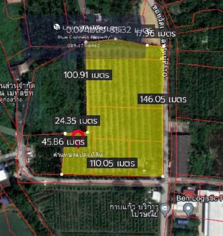 Land for sale, corner plot, Soi Wat Choeng Len, size 9 rai 25 square wa, width 147 meters, near Petchkasem Road, only 4.9 km. Suitable for residential, office, factories, warehouses, agricultural gardens Details (Code A1-0066) - Land size 9 rai 25 square wa. Corner plot next to concrete road. Rectangular shape, width 147 meters, on the corner side next to the road, the alley is 110 meters deep, the other side is 84 meters deep, can be divided for sale 4-5 rai - Land located in Soi Entrance to Wat Choeng Len Near Phetkasem Road, only 4.9 km. Near Wat Thian Dat, only 2.2 km. - Suitable for residential houses, offices, factories, warehouses, agricultural gardens Location Soi Wat Choeng Len, Khlong Mai Road (Highway 1034), Bang Chang Subdistrict, Sampran District, Nakhon Pathom Province Selling price 36,250,000 baht (price 11,000 baht / square wa only) can be divided nearby places - Wat Choeng Len 1 km - Wat Thian Dat 2.2 km - Petchkasem Road 4.9 km - Samphran Crocodile Farm 5.7 km - Big C Om Yai 7.2 km Selling price 36,250,000 baht only !!! (Half of the transfer fee) Blue Connect Property (Property Resales & Leasing) M: Contact number | E: Contact email Website : www.BlueConnectGroup.com Line ID: @BlueConnect (put @ in front too) Facebook Page: BlueConnectProperty