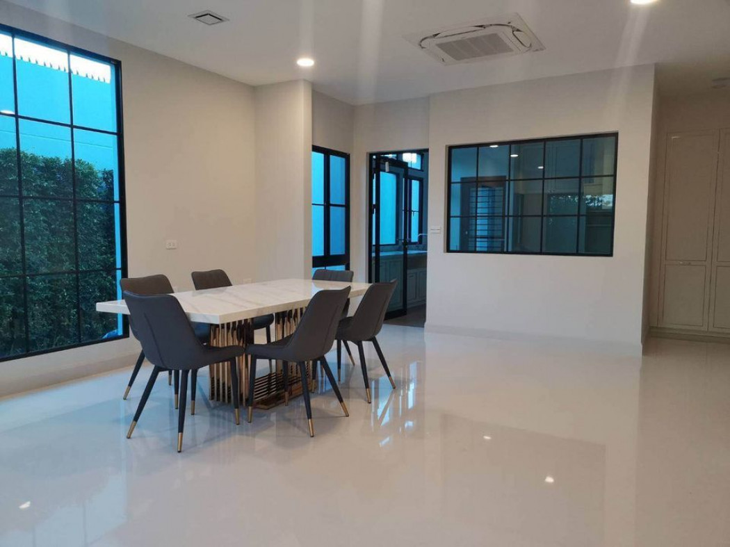 Brand new luxury detached house for rent, Nantawan, NANTAWAN Rama 9 - Krungthep Kreetha Super luxury, spacious area There is a fountain in front of the house. Ready to move in April 15, 2023 Good Point : corner house, behind the house is not attached to other houses, next to the main road :: details :: - Luxury 2 floors - Size 103.8 sq w - Area 302 sq m. - Type 4 bedrooms, 5 bathrooms - 1 maid's room, 1 prayer room, - large storage room - Parking for 3 cars -------------------------------------------------- ------------ With furniture, rent 350,000 baht/month Minimum rental contract 1 year, 1 month in advance, 2 months security deposit. -------------------------------------------------- ------------ Welcome foreigners, Chinese people. Able to register a company Allowed to raise small animals .. :: facilities :: - There is a solid modern security system both inside the project and inside the house - 24-hour security guards - The fence around the project is 3.6 meters high. - Swimming pool, fitness, park :: Nearby places :: Brighton International School 3.5 km. Yellow Line Si Kritha Station 6 km. •The Nine Rama 9 9 km. Wellington International School 6 km. Samitivej Srinakarin Hospital 6.4 km. The up-down point of the Si Rat Expressway 10 km. Contact: Big Call : Contact number Line: big Contact number Bangkok Elite Property Providing services for buying, selling, renting houses, condos, land, real estate Welcome to give advice on bank loans.