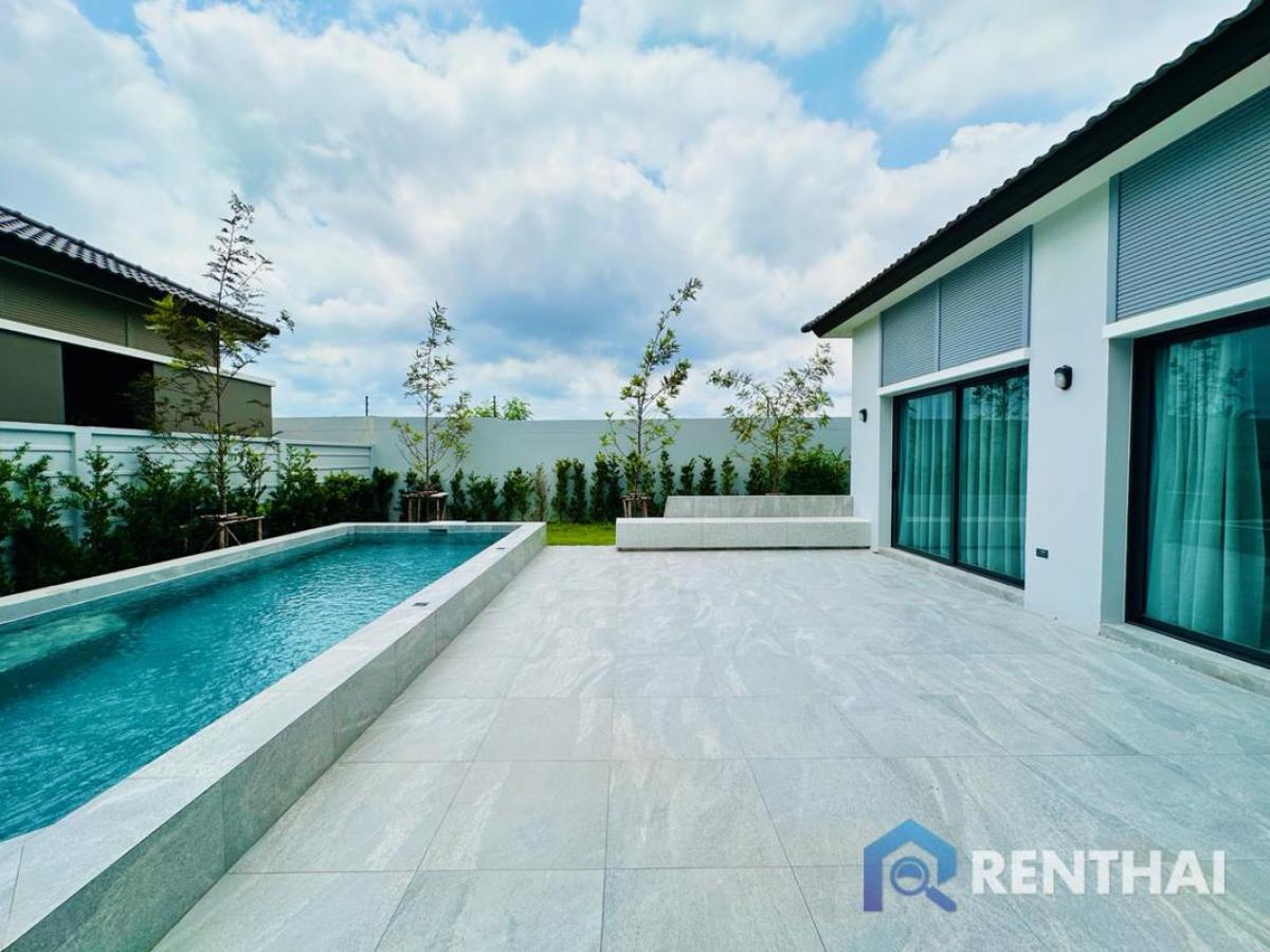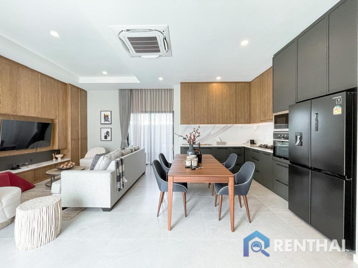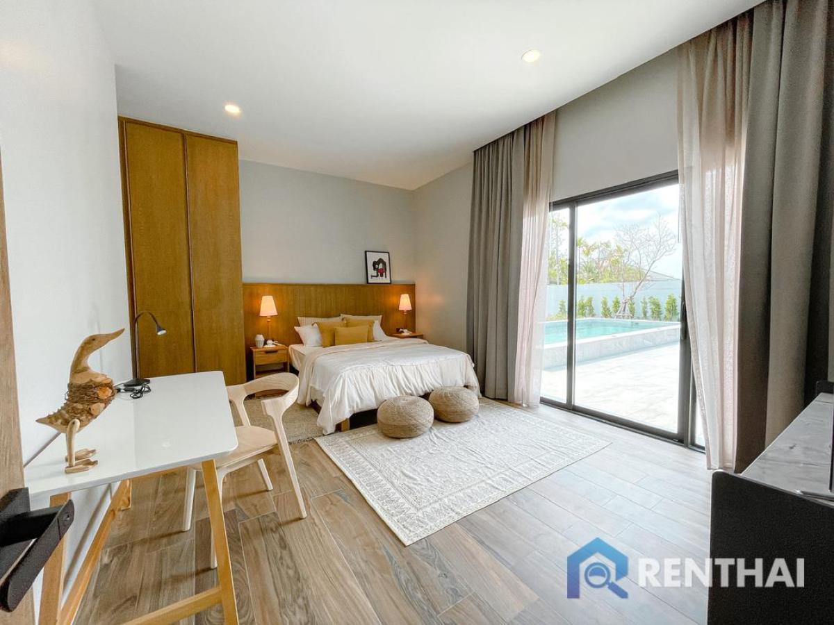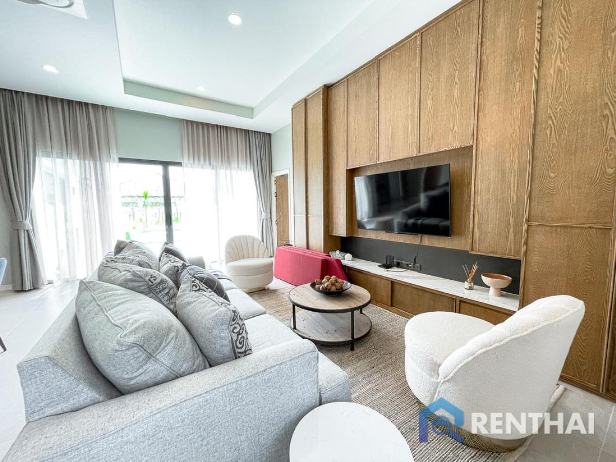 Listing code: #RT01123 This luxurious 3-bedroom home in Huai Yai, Pattaya offers you the ultimate in style and comfort. With 4 bathrooms, a 95 sq.w land size and 190 sq.m usable area, you will be surrounded by the beauty of nature with a pool view from your private garden or pool access. The fully furnished European kitchen is for your convenience. Enjoy living in Panalee Banna Project in this stunning home! Sale price: 10,800,000 baht - 3 bedrooms, 3 bathrooms - Land size 95 sq.w. - Usable area 190 sq.m. - 1 floor - Pool view - Thai quota - Fully furnished Facilities: - Private pool - Pool Access - Private Garden - Garden Access - European kitchen - Bathtub - Washing Machine Location: Huai Yai, Pattaya For more details feel free to contact us by Tel: Contact number WhatsApp: Contact number Line ID: minehappiness https://line.me/ti/p/4FWcxgo_eM (click the link to add line) ……………………………………………………………………… Website: https://renthai.com Facebook Page: https://www.facebook.com/renthai.pattaya Line Official: @renthai Email: Contact email Renthai - your reliable assistant in buying, selling and investing in real estate in Pattaya.