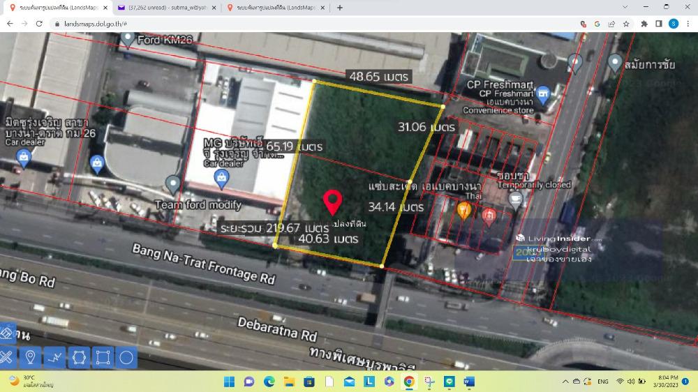At Bangna km.26 outbound 815 square wah (or about 2.0375 rai) the owner sells himself The land is rectangular Selling 100,000 baht per square wah Nearby places: - Next to MG car center, MG Rungcharoen Co., Ltd., Bangna km.26 - Opposite Samania Plaza New Chinese shopping center opens