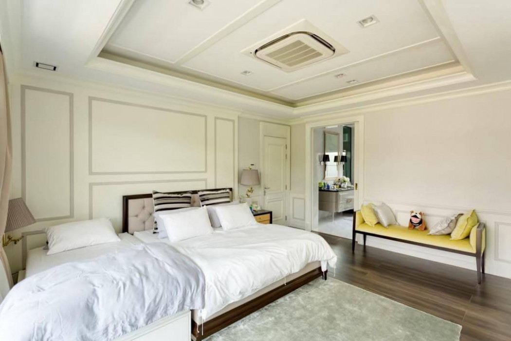 H-4166 Urgent sale, golden location, 2-storey detached house in the area Watcharaphon, Sai Mai, Nantawan Village, Ramintra - Phaholyothin 50 Land & House Project Location Close to Watcharaphon Intersection - Sukhapiban 5 Road Theparak, Bang Khen District, Bangkok 10220 Details - Model house - 2-storey detached house - Area 145 sq.m. - Usable area 403 sq.m. - 4 bedrooms, 6 bathrooms - 1 maids room, 1 living room - 1 dining room, 1 multipurpose room - 1 prayer room (parking for 6 cars) - 1 Western kitchen, 1 Thai kitchen (addition) - 2 maid rooms separated from the house Facilities - guest building Area in front of the project (Co-Working Space) - Clubhouse building in the middle of the project - 1 swimming pool, salt system, size 10 x 25 meters and a childrens pool , a gym - 2 garden areas in the project and water Large in the middle of the project - Playground and exercise equipment Outdoor - Multi-purpose pavilion - CCTV system at the Main Gate and within the project - Fence around the project - The main road is 16 m wide and the internal road is wide 9 m.- Remote Key Card Access, RFID system (or Easy Pass) - 24-hour security guard - Electric sliding gate project 2 sections (Double Gate 2 floors) - Magnetic burglar alarm system every Behind Nearby landmarks such as - Big C Food Place - Thanommit Market - Or-Ngern Market - Foodland Ramintra - Ramindra Liab Duan Market - Ying Charoen Market - Central Plaza Ramintra - Big C Sai Mai - CGH Hospital - Saiyud Hospital - Bhumibol Adulyadej Hospital - Sinphaet Ramintra Hospital - Krirk University - Phranakhon Rajabhat University - Kasetsart University - Sai Mai District Office - Don Mueang Airport Selling price 69,000,000 baht (Half transfer fee 50/50) Interested contact ☎️ Contact number ☎️ Contact number or click on line oa https://lin.ee/dQ5TB3i and can contact additional channels at website - https://www.wanvisar-property.com/ Free loan service and take care of the transfer at the land office Done Fast sale, good price, arrange loan WP003