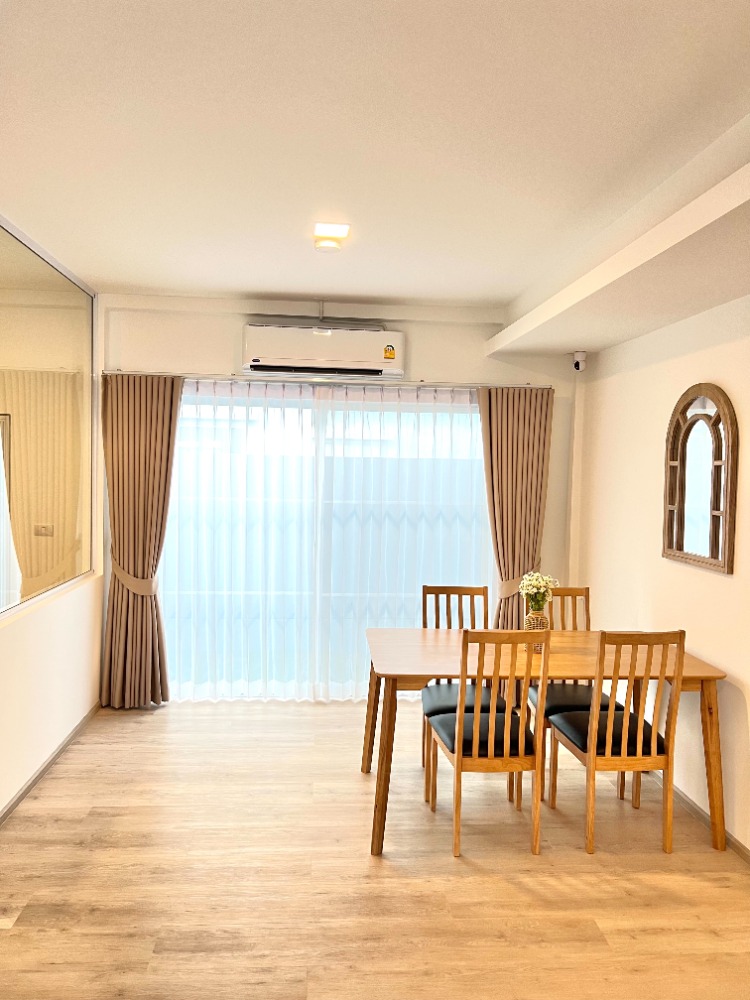 For rent, rent townhome, Indy 2, Bangna, Ramkhamhaeng 2, house facing: south 💵 Rental fee 40,000 baht / month ❤️ Interested contact: Na Tel No: Contact number ❤️ Line ID : Contact number 💵 Rental fee 40,000 baht/month 2 months deposit and first month rent payment ✅ You can carry your bag and move in. 🐶"If raising an animal, I would like to collect a deposit of 3 months" (not accepting cats) House with 3 bedrooms, 3 bathrooms, 2 parking spaces, 122 sq m., Area 22 sq m. new condition house 👉🏻 Fully furnished as in the picture Living room: sofa bed, Smart TV 55 inches, real teak wood TV cabinet, rattan chandelier set, artificial plants, minimal picture frames, wooden center table with round glass top Dining zone: wooden dining table, 4 wooden chairs, mirror, 2 bar stools Kitchen: All built-in cabinets are soft close, Samsung 2-door refrigerators, induction cookers and Hafale hoods, wide sinks, dish drainers, washing machines and Electrolux microwaves, drawers for storing bottles, There is a hole and a power plug for placing the dryer. Master bedroom: King size bed and 6 feet mattress, 2 pillows, mattress protector, 2 meter high Index wardrobe, SB TV cabinet, decorative picture frame, artificial tree Middle bedroom: bed and mattress 5 feet, wardrobe, dressing table with chair and stool Small bedroom: air conditioner and UV curtains (customers can request to add a bed and a 3-foot mattress - There is a garden area behind the house - Fitted with mosquito nets throughout - UV protection curtains and blinds throughout the house - 4 air conditioners (every room) - 2 water heaters - 2 glass shower screens - Smart home lighting system can be ordered by mobile phone for almost the whole house - Wifi Internet (High Speed Fiber) with a signal extender to cover the whole house Nearby places: Mega Bangna 2.2 km., Concordian International School, Lotus Ram 2, Ramkhamhaeng University 1 km., Number One Market 1 km., Suan Luang Rama 9 Facilities: 24-hour security, patrol every hour, cctv in the project and in 1 house, swimming pool, fitness center, garden, clubhouse ⭐️ Ready to view and move in ⭐️
