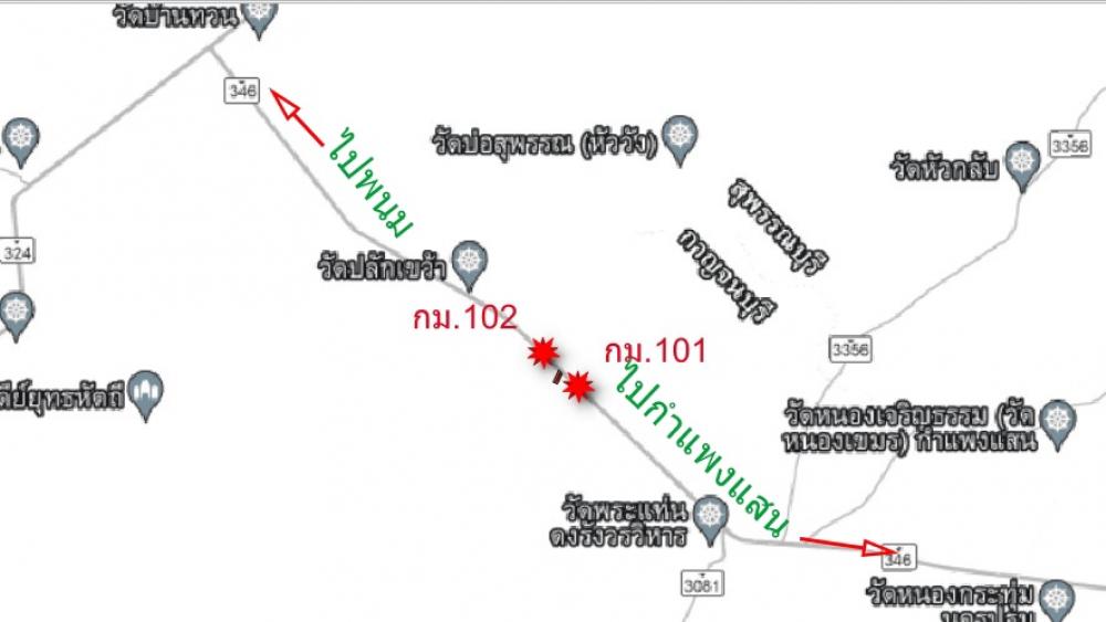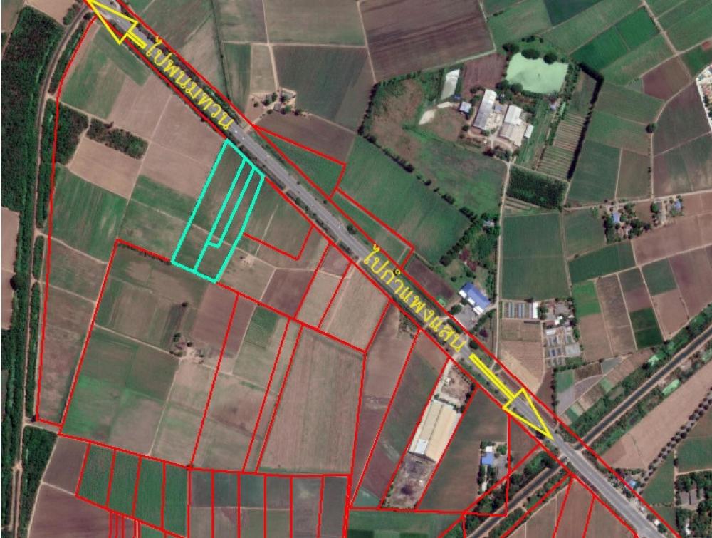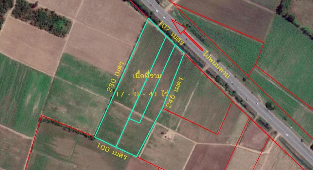 17 acres of land on the main road Title deed in front of the main road, Road 346, Kamphaeng Saen - Phanom Thuan width 107 meters 🚗 Phra Thaen - Phanom Thuan 🏤 Its opposite the pier vermicelli. Ulok Si