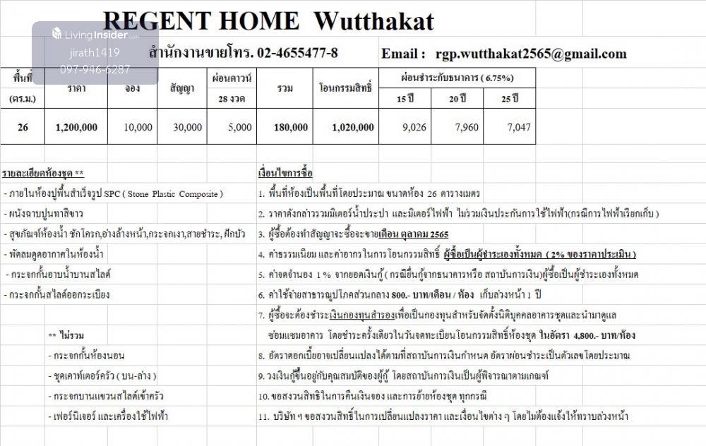 Sale Downpayment Regent Home Wutthakat Condo | Sale Downpayment Regent Home Wutthakat Available Foreigner Quota | Sale First Month Purchase Ukraine (Now Foreigner Name) - (Owner Post)