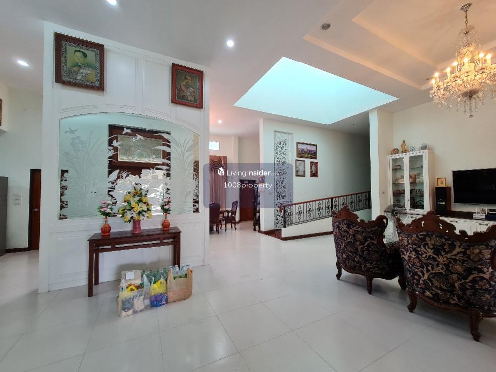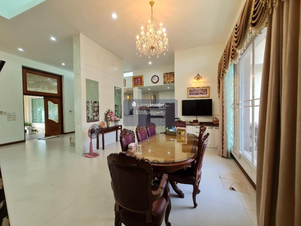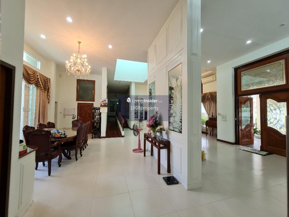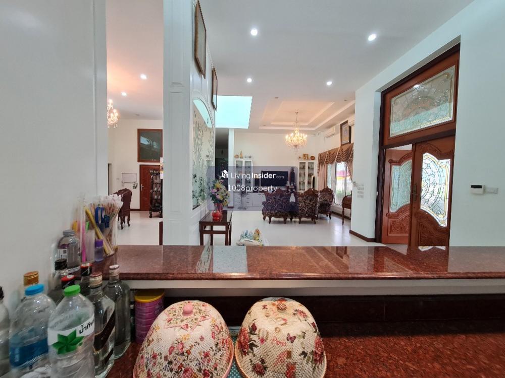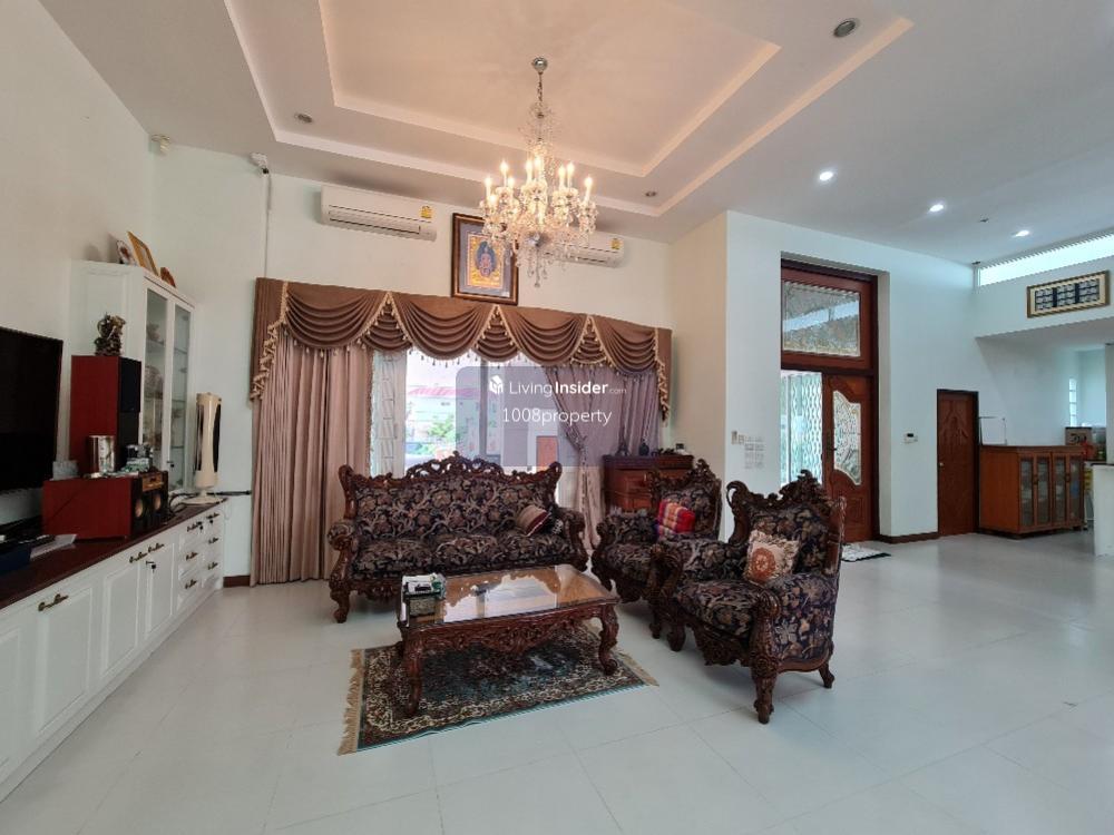 Single-storey detached house, Prathana Pavilion Village. Soi Wat Takhian, Nakhon In Road, Bang Kruai, Nonthaburi, area 199.20 square meters, 3 bedrooms, 4 bathrooms, 2 dressing rooms, kitchen inside and Thai kitchen outside. There is a separate maids room. The usable area is 394 square meters. The owner built it himself. Use good materials Built-in furniture With 9 air conditioners and a ramp for elderly wheelchairs. Convenient travel Near Dragon International School, Wat Takhian Floating Market. Denla Rama 5 School, Rama 5 Market, HomePro, The Walk Mall, Kanchanaphisek Road and Ratchaphruek Road #House has a ramp for the elderly #Wheelchair ramp #Single story house #Elderly