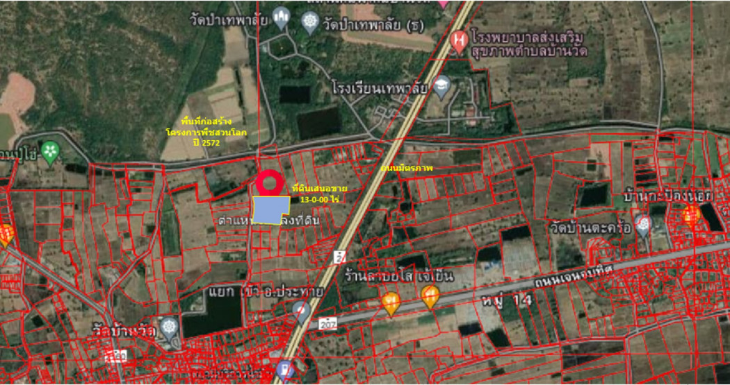 ขาย ที่ดิน ในย่านชุมชนบ้านวัด ต.เทพาลัย อ.คง นครราชสีมา ใกล้พืชสวนโลก ปี 2572 เนื้อที่ 13 ไร่ ผังเมืองสีชมพู