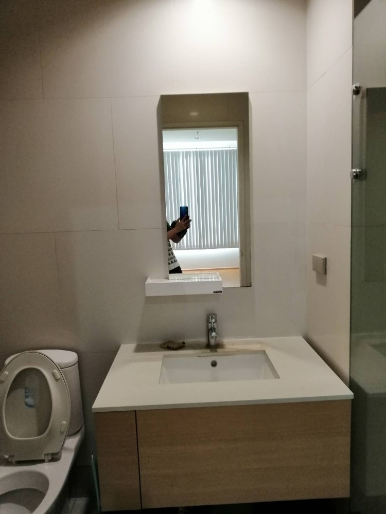 # Size 40.9 sq m. # It is the only room in the condo that divides 1 bedroom and 1 living room. # 2 Air-conditioners in bed room and living room. # Curtains installed # The balcony has a faucet for placing a washing machine. # Well ventilated room and cool breeze # Near Phaya Thai BTS and Ratchathewi BTS. Line: flukelerd. Tel: Contact number or Contact number
