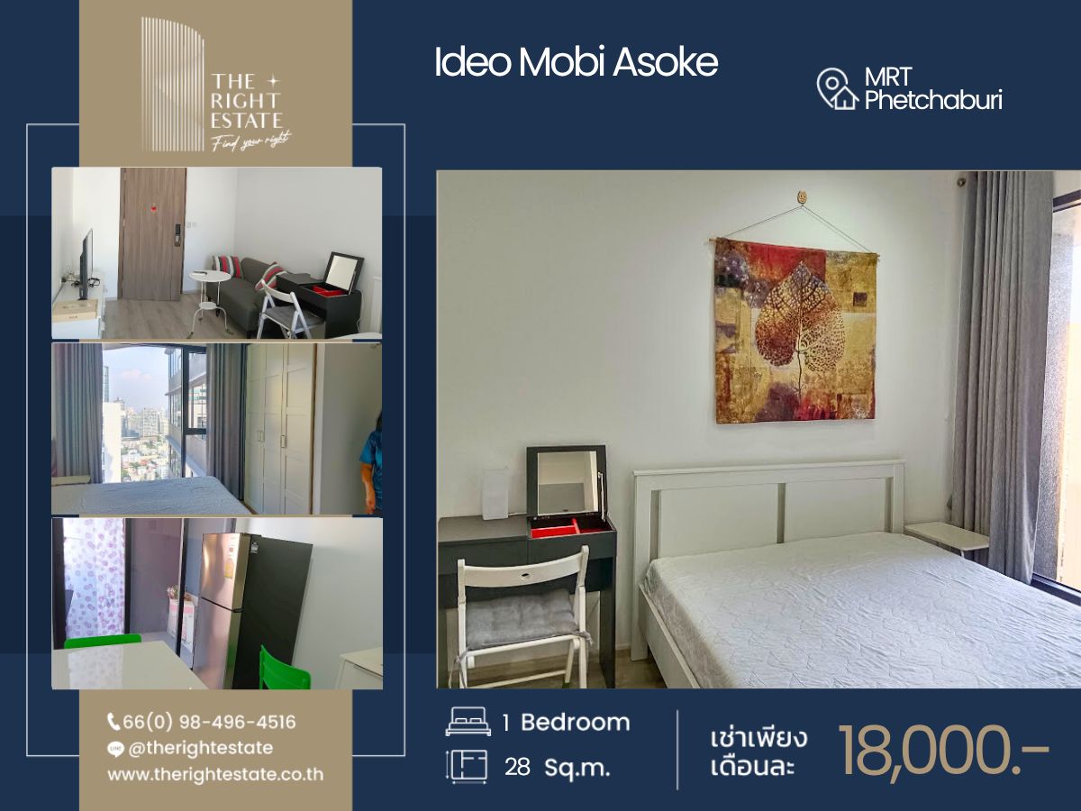 [For Rent] Condo - Ideo Mobi Asoke - Z0087 ▪️ Location:MRT Phetchaburi Area:28 Sq.m Floor:- Type:1 Bed 1 Bath Rental fee:18,000 Baht/ Month (Negotiable) ▪️位置:MRT Phetchaburi 面积: 28 平方米 楼层:- 层 类型:1 卧室 1 卫生间 租金:18,000 泰铢/月 (可谈) -------------------------------------------------------- ❝ บริการ รับฝาก ขาย-เช่า บ้าน คอนโด อสังหาริมทรัพย์ ❞ Renting and selling service for your own properties 为您提供房产服务 买卖-租房 -------------------------------------------------------- ✒️ สนใจติดต่อนัดชมห้อง : contact us to view more units : 联系方式: Phone no : 098 l 496 l 4516 [Nano : Thai/Eng] Phone no : 086 l 383 l 8689 [Man : Thai/Eng] Line ID. : https://page.line.me/therightestate Whatsapp ID : Contact number WeChat Id : wxid_zl7fk5jvzs6m12 Co-Agent ติดต่อ : https://lin.ee/CPDovxy Facebook : https://www.facebook.com/therightestate/ Website : www.therightestate.co.th Check available units : https://www.therightestate-stock.com/ -------------------------------------------------------- 𝙏𝙝𝙚 𝙍𝙞𝙜𝙝𝙩 𝙀𝙨𝙩𝙖𝙩𝙚, 𝙁𝙞𝙣𝙙 𝙮𝙤𝙪𝙧 𝙧𝙞𝙜𝙝𝙩