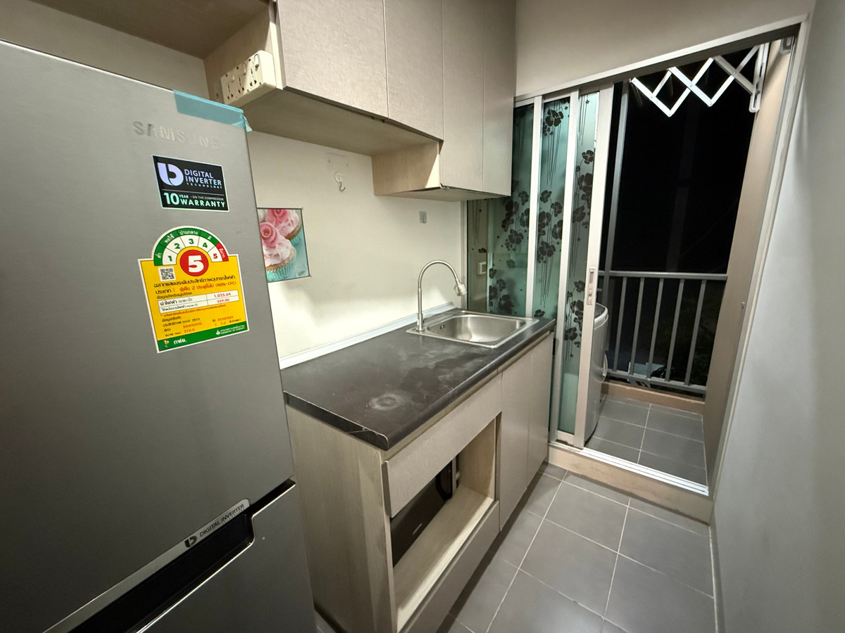 Ready to move in condo for rent Furniture / electrical appliances complete 8,000 baht , good location, easy to find things to eat, easy to travel into the city Near 7-11/ Fresh Market & Imperial Samrong Department Store/ BTS Samrong Contract 1 year, deposit 2 months / advance 1 month Condo 1 bedroom 28 sq.m., 3rd floor, Building D divided into kitchen zone, living room, bedroom Owner released by himself Furniture / complete electrical appliances - Build-in: wardrobe / TV shelf / kitchen counter / shoe rack - Electrical appliances: 1 air conditioner / microwave oven / refrigerator / washing machine / water heater - Furniture: bed + mattress / sofa / dining table & chairs nearby places - BTS Samrong 900 meters, there is a queue waiting in front of the condo - There are 7-11 in front of the condo - within a radius of 500 meters, it is a market and community area Project environment and facilities - Fitness - Swimming pool - Lobby - Indoor parking - Security 24 hours Interested contact Eve ID Line: eef36