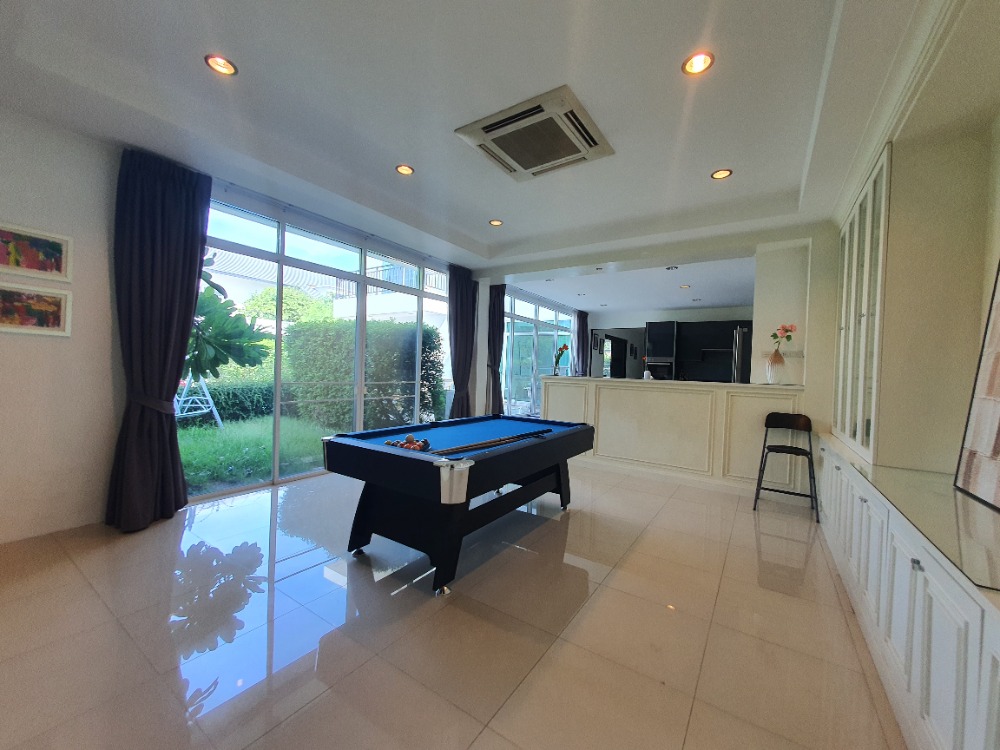 Luxury house for sale in the Thararom Ramkhamhaeng project Location: https://goo.gl/maps/JKx7sHkUA6W5Watk6 The landmark in front of Soi Mee Foodland on Ramkhamhaeng Road, only 5 minutes from the New BTS Orange Line. House living area 460 square meters, land area 126 square wah with large private swimming pool. Suitable for families 4 bedrooms, 5 bathrooms, 1 maid//'s room and laundry area, downstairs has 1 bedroom and upstairs has 3 bedrooms The double volume living hall make it feel more comfortable and connected to the dining area. Western style modern kitchen with hi-quality appliances, connected with the recreation section. Or the second living room which is open to a small garden beside the swimming pool. Fully furnished Selling Price: 60 MB (TF & Taxes 50/50) For more information, make an appointment to see the house, please contact Contact number, Contact number Line Official: @211ghmqu LineID: def.99888