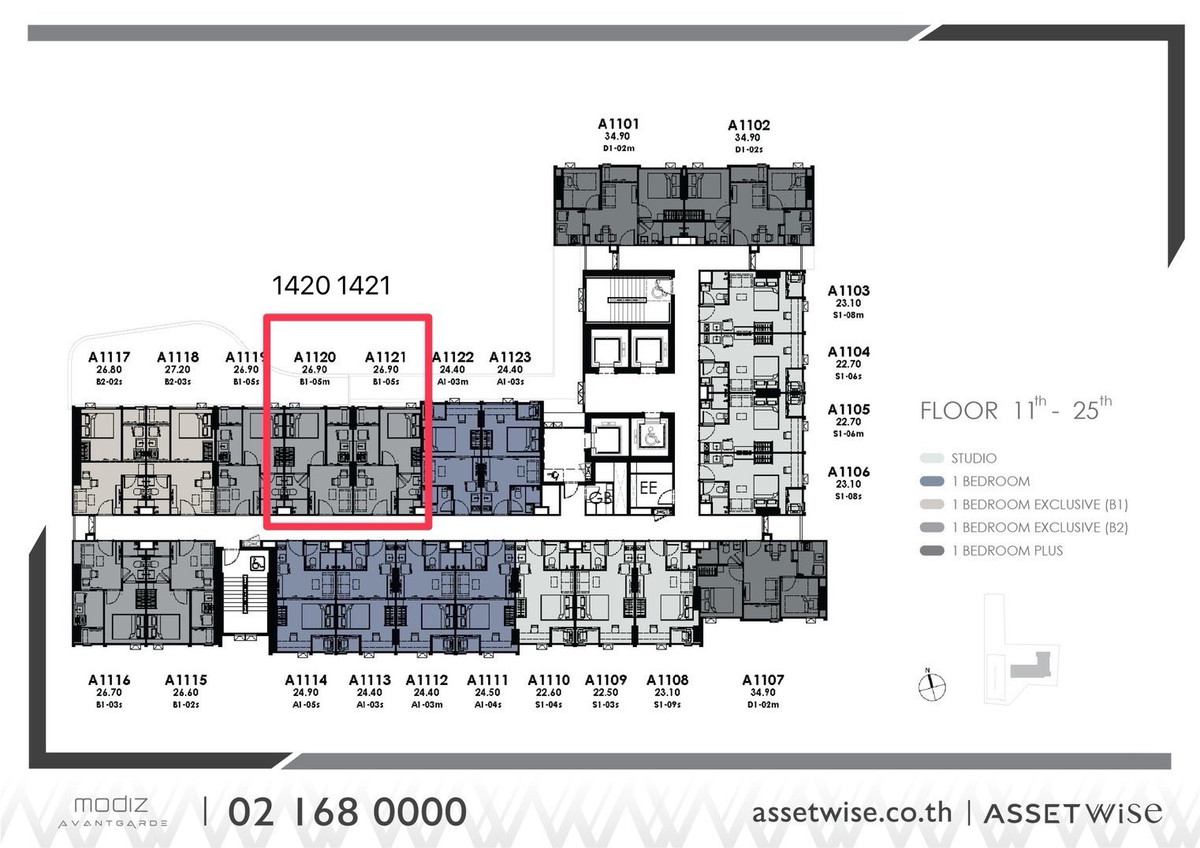 ✴️ New #Modiz #Vantgarde Modern Condo New Condo ✔️ Type 1 BR Exclusive 2.455 Delete. 🅱️ North, 14th floor, 1418, area 27.20 sq.m., price 2.565 negative. 🅰️ North, 14th floor 1419 Area 26.90 sq.m. Pric