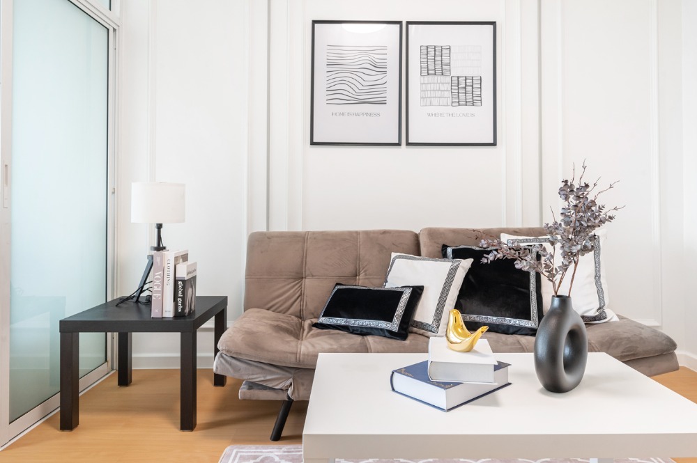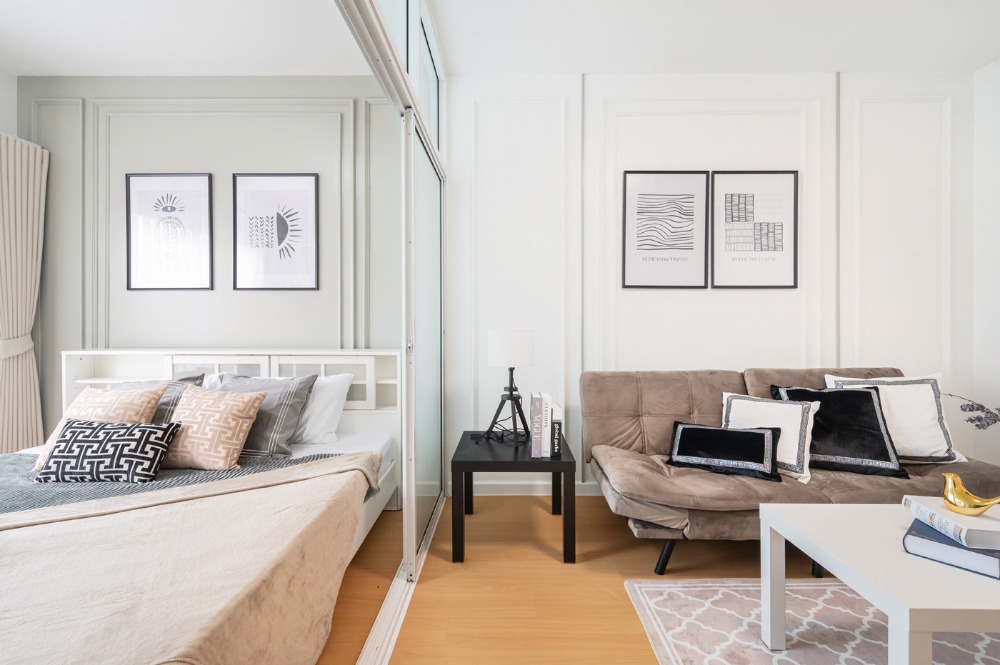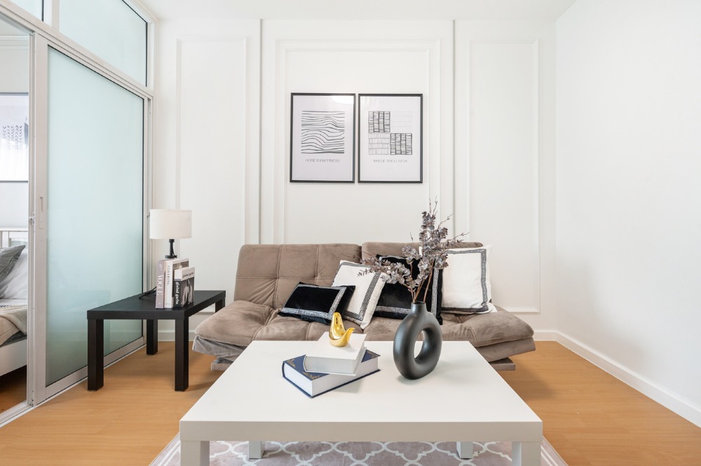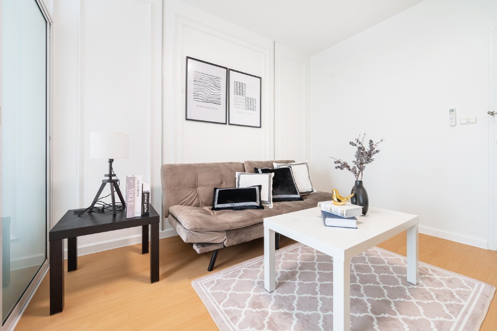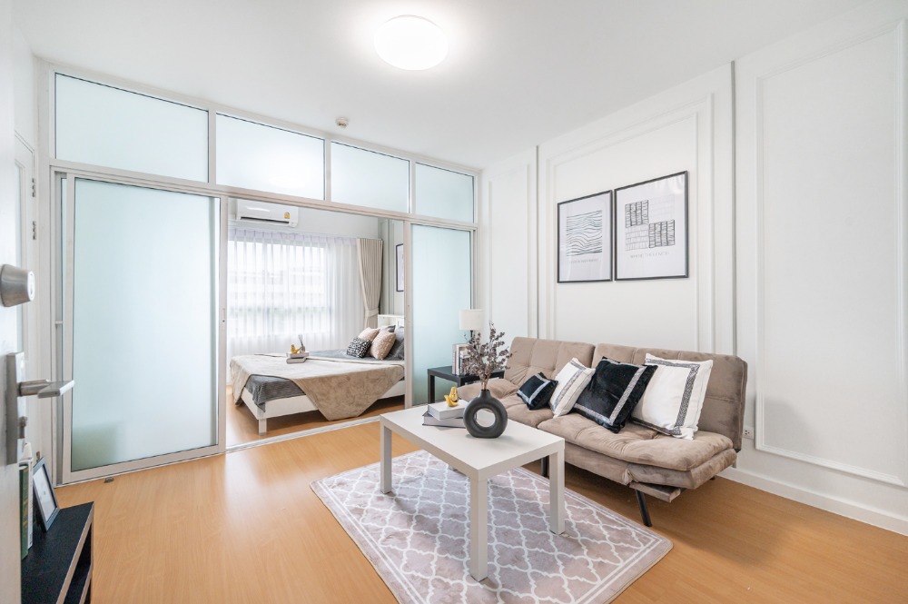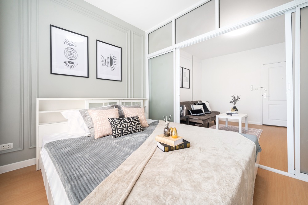 Beautiful condo for sale, newly renovated, fully furnished. Located near the BTS Skytrain, on a main road. #CondoLadprao Salary 18xxx, loan available / Installments only 6xxx 624 Condolette Ladprao 62