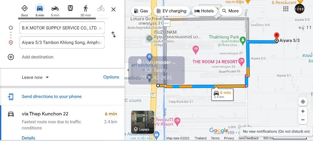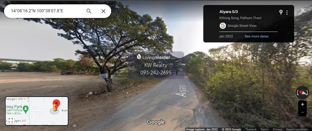 Land for sale, 3 rai, Aiyara Road 5/3, Khlong Luang, Khlong Song Width on the road 40 meters, depth 120 meters 7.5 million per rai, transfer fee 50:50 Enter via Iyara 1 Road, only 400 meters away from