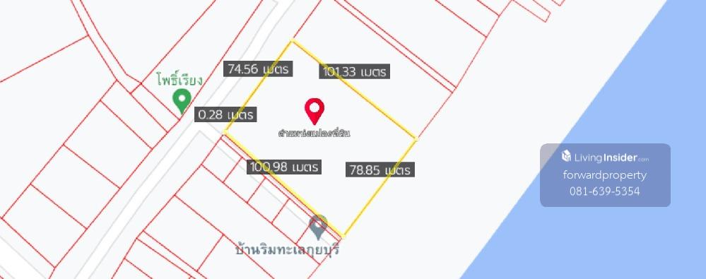 Seaside Land for Sale in Kui Buri, Prachuap Khiri Khan Size: 4-3-42 Rai (approximately 7,368 square meters) Frontage: 78 meters by 100 meters Green space Located within a community for comfort and pri