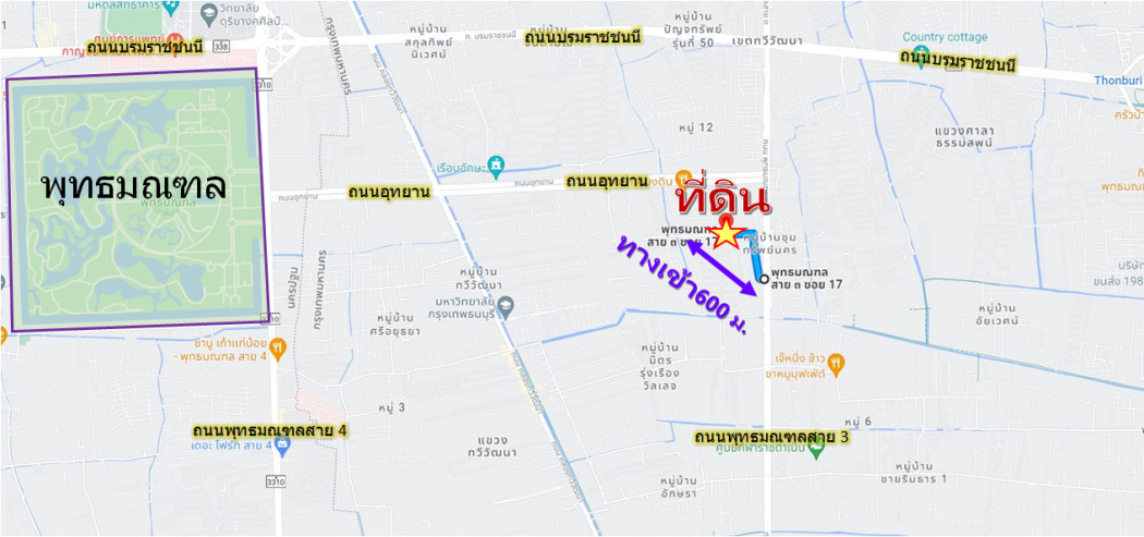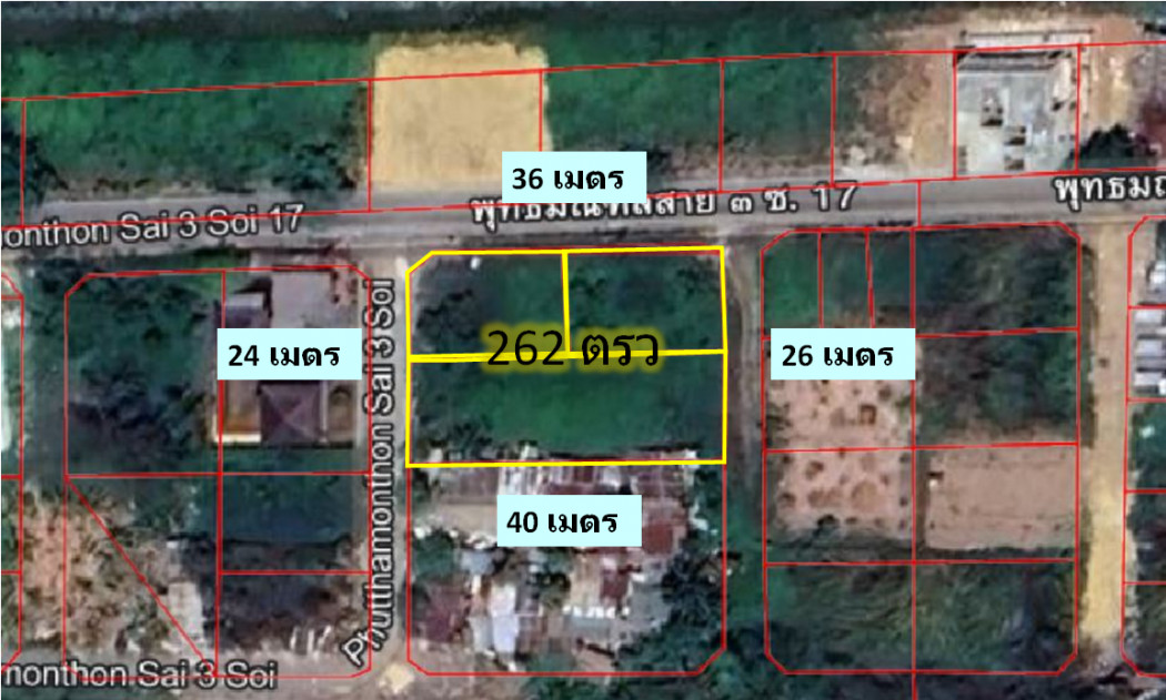 Land for sale on the road, Soi 17, Phutthamonthon Sai 3, 262 square meters, near Aksa Road, suitable for building houses, warehouses :: Highlights :: - Land on the road in Soi 17, Phutthamonthon Sai 3 - The same alley as Nawaminthrachinuthit Satri Witthaya School, Phutthamonthon - Only 600 meters from Phutthamonthon Sai 3 Road - Near 7-Eleven, shops, restaurants and educational institutions - Can enter and exit in many routes, Phutthamonthon Sai 3, Soi 17, Utthayan Park Soi 5, Phutthamonthon Sai 4, Aksa Road :: Details :: - Size 2 jobs, 62 square meters - Width of about 36 meters - Depth of about 24-26 meters - Green plan Kor. 4-19 :: Nearby places :: - Phutthamonthon - Nawaminthrachinuthit Satriwitthaya Phutthamonthon - Lotus Go Fresh Phutthamonthon Sai 3- Thammasala Police Station Coordinates: http://maps.google.com/maps?q=13.774352,100.360837 Price: 9,170,000 baht (Price 35,000 baht / square wah) Interested contact: Nok Contact number Line: noklarin Winvestor Co., Ltd. Member of the Thai Real Estate Brokers Association
