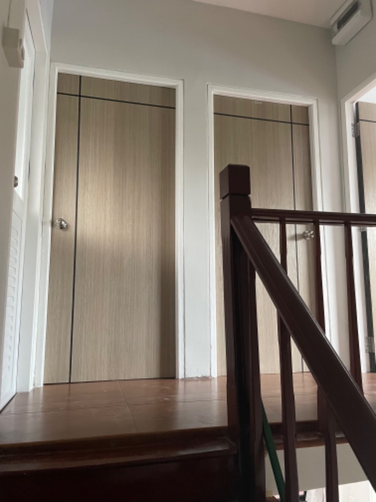 Twin house, 2 floors, 4 bedrooms, 2 bathrooms, area 39.8 square meters 4 bedrooms, 2 bathrooms, upper and lower Can park 3 cars inside the house and in front of the house, completely renovated 4 new Mitsubishi air conditioners Monthly rent 15,000 baht per month, minimum contract 2 years ready to move in Pay 3 months Separated as 1 month advance rental, 2 months insurance fee Interested contact Bas Tel. Contact number Line ID: Contact number