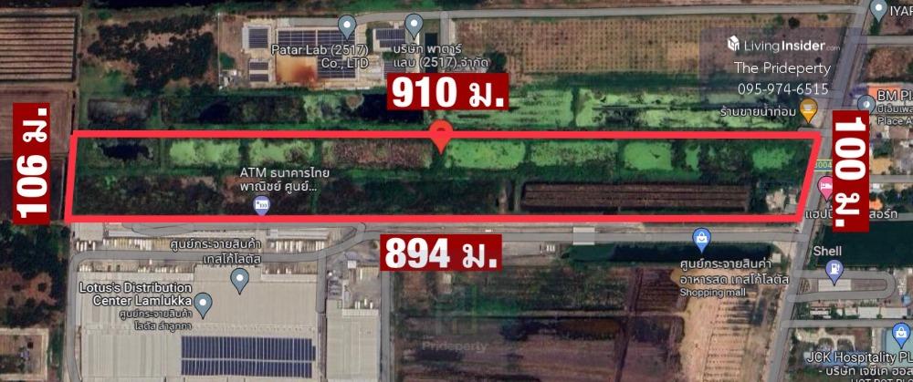 Land for sale, 56 rai, Lam Luk Ka Khlong 7, Pathum Thani, next to the main road, only 5 km from Lam Luk Ka Road. :: Land characteristics :: - size 56 rai, Bueng Kham Phroi Subdistrict, Lam Luk Ka District, Pathum Thani Province - Approximately 100 meters wide x 900 meters deep - Have electricity and water - Next to concrete road about 8-10 meters wide on each side - Enter from Lam Luk Ka Road, about 5 km. - Suitable for warehouse distribution center allocation project - Two contiguous plots (Approximately 28 rai per plot) can be divided and sold Price 320,000,000 baht (5.7 million baht/rai) All expenses on the transfer date: Seller is responsible. (no brokers) Interested contact: Mr. Tor 095.974.6515 Line: theprideperty (English communication is welcome) The Prideperty Co., Ltd. Welcome to consult and consign all types of real estate. no upfront costs Sell and mortgage real estate in Bangkok and its vicinity