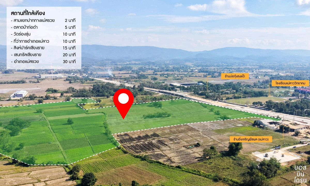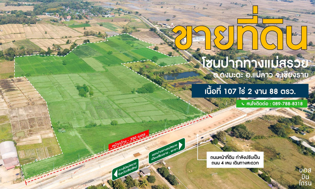 Large plot of land for sale, on Highway 118 - Area 107 rai 2 ngan 88 sq.w. - 350 meters wide on the road - On Highway 118 (in the process of being expanded to 4 lanes) - On the side there is an exit on the irrigation canal - Only 6 km from Phahonyothin Road - 30 km to Mae Fah Luang Airport - 20 km to Singha Park - 30 km to Chiang Rai Prachanukroh Hospital - 20 km to Central Chiang Rai Interested, contact Din Contact number (Prices are going up. If the road expansion project is completed, it will be more expensive.) Interested, contact Din Contact number