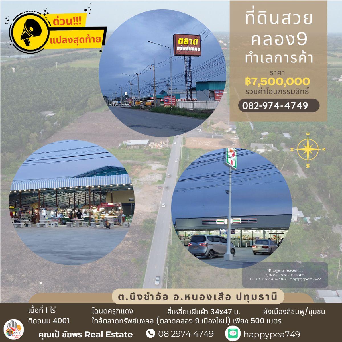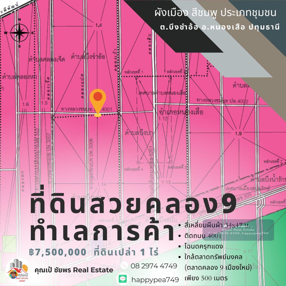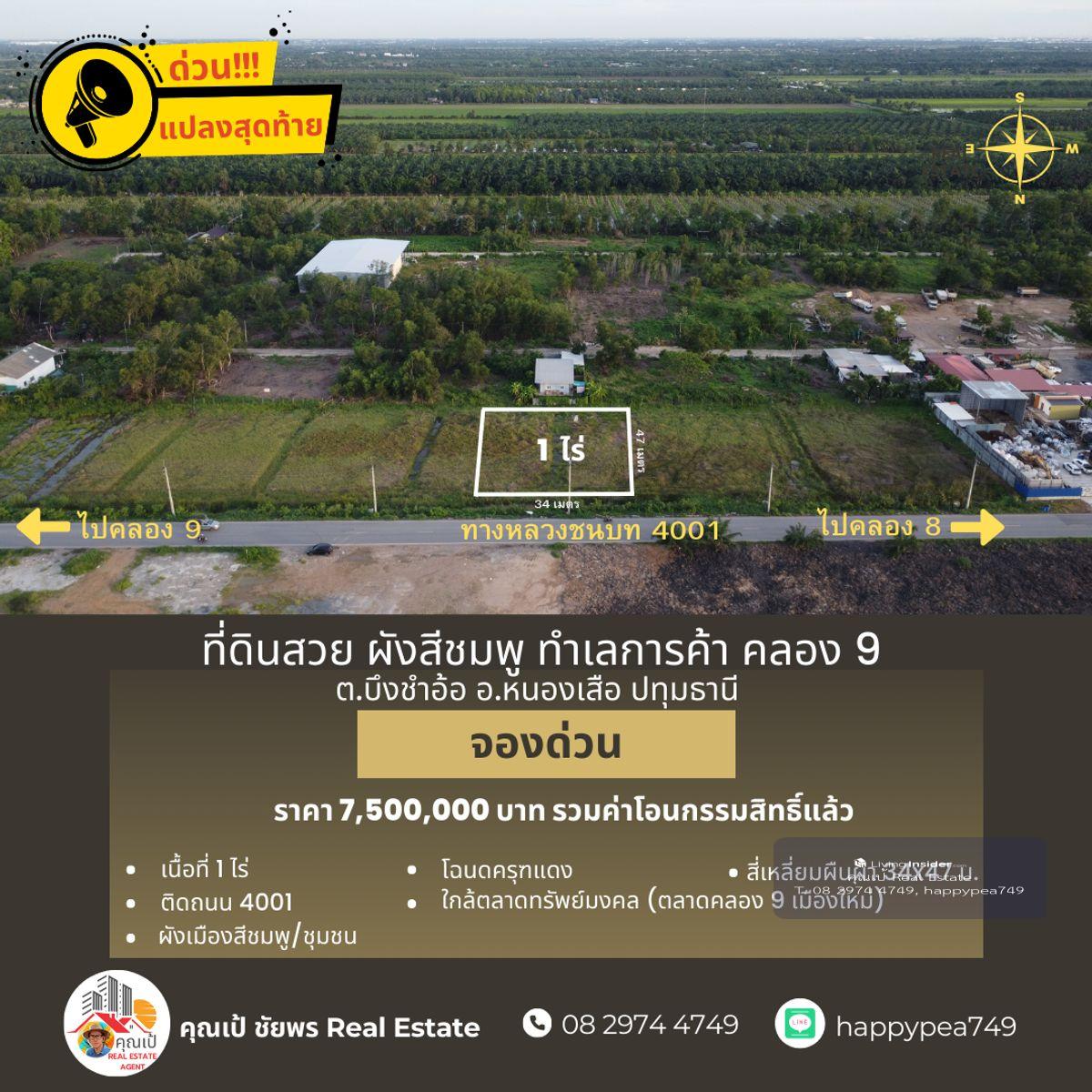 🧶When you are looking for new investment opportunities. Land is one of the resources that does not deteriorate. But it has increased in value every day. 📣Land in a good location will be suitable for the business you want to do. And will make your business grow sustainably 🧶 So why dont you invest in land at Khlong 9, Nong Suea, Pathum Thani, on Road No. 4001 near Sap Mongkol Market (Khlong 9 Muang Mai Market)? 🎀 This plot of land is 1 rai in size and is rectangular 🎀 🚛Next to rural highway number 4001, road width is approximately 34 meters, depth 47 meters. 🌍Land plot facing north, very beautiful🌎 🏭 Title deed is Nor Sor. 4 Garuda Daeng, ready to transfer, not subject to any burden ⚡ Electricity - water supply 💧 Ready to convert 🌍 Importantly, the pink city plan, community type 💎Land location💎 On rural highway P.T. 4001, Bueng Cham O Subdistrict, Nong Suea District, Pathum Thani 12170 🌝Google Map https://goo.gl/maps/eqtYHt8YXarT6NmE7 🎯Nearby places🎯 - Tam Tai Krua Shop 200 meters - Sap Mongkol Market (Khlong 9 Market, Muang Mai) 500 meters - Khlong 9 Road, 700 meters - Nong Suea Hospital 4.4 kilometers. - Rangsit-Nakhon Nayok Road (305) 10 kilometers. 💰💰Sale price 5,500,000 baht including all ownership transfer fees💰💰 Place a deposit - make a reservation, enter into a 10% contract, after which make an appointment to transfer ownership within 45 days. 🏡🏘This land location is an excellent location for all types of businesses. Whether its a store, warehouse, company office. Everything you want to create can be made on this plot of land without expecting to have competitors in the future 🛎As you can see Open new opportunities for your future. Giving an opportunity to invest in this plot of land at Klong 9, Nong Suea, Pathum Thani, near Sub Mongkhon Market (Klong 9 Mueang Mai Market). and own what you have long dreamed of Dont delay! Call now for more details. 🤵🏻 Mr. PEA ☎️ Contact number Good land is necessary! Invest now in Khlong 9 land, Nong Suea, Pathum Thani, near Sub Mongkhon Market. To create a future full of success! #Land of Nong Suea #Khlong Kao land #Khlong 9 land #Pathum Thani land #Nong Suea #Pathum Thani #Sap Mongkol Market #Khlong 9 market #Khlong 9 Mueang Mai market #Land 1 rai #Road 4001 #Tam Tai Krua #Tum Tai Krua Shop #Bueng Cham O #4001