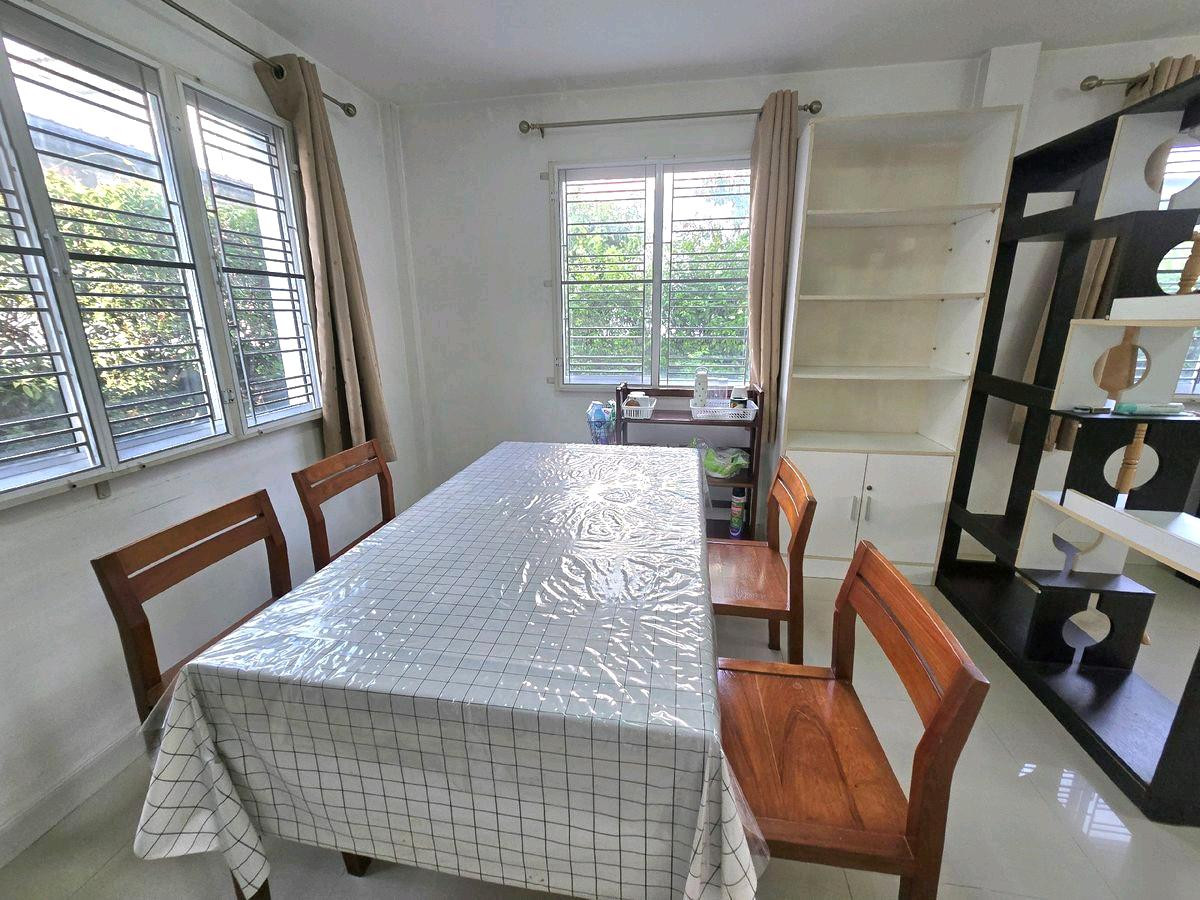 House for rent, 2 floors, 58 sq m., 3 bedrooms, 3 bathrooms, 1 living room, 1 kitchen, 3 air conditioners, fully furnished in every room. (with wrought iron + curtains and water tank + water pump) On the Pak Kret - Chaeng Watthana bypass road, can exit Samakkhi Road quiet living project There is a 24-hour security system. The club has a swimming pool. fitness park, good location -Near Central Chaengwattana -Impact Muang Thong Thani -HomePro Big C Chaengwattana -Panyapiwat Institute -Chaengwattana Expressway - Suankularb School, Nonthaburi -World Medical Center Hospital, etc. For rent 26,000/month **Does not accept pets** ** Make an appointment to see the house (Minimum 1 year contract) Contact k. Kunjira Contact number Come on Contact number