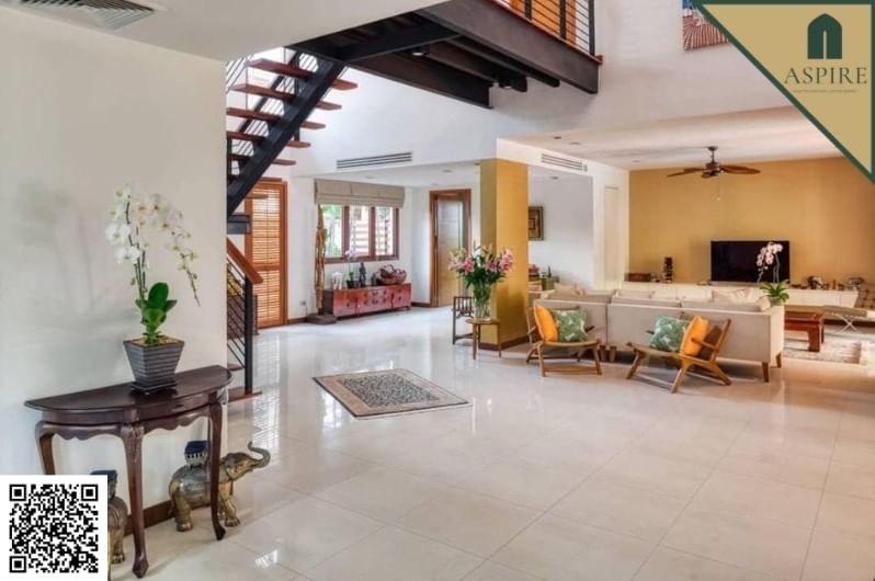 [For Sale] 2-Story Luxury Detached House, with Guest House, Resort Style with Swimming Pool, Sukhumvit Road 101/1 (Soi Wachiratham Sathit 46) • Land area 351 Sq.wa. • Usable area: Total 842 Sq.m. • The main house has a total of 4 houses, 3 bedrooms (the main bedroom has a large balcony), 1 office room, 3 bathrooms, a living room, a dining room. Large kitchen with floating island. • 1 Small House, 1 bedroom, 1 bathroom, living and dining room, kitchen and large balcony. • 1 Maid's residence with bathroom, Thai kitchen and storage room • Parking: 8 cars can be parked inside the house and at least 3 cars can be parked outside along the fence. • Fully furnished Decorated and ready to move in (except furniture, decorations and some personal items) • Swimming pool: size 4 meters x 14 meters with teak deck • The environment is good and quiet. • Located in Soi Wachiratham Sathit 46, Sukhumvit 101/1, Bang Chak , Phra Khanong , Bangkok 10260 Nearby places • BTS Punnawithi • Tesco Lotus Express Asking for 95 MB (Transfer fee 50/50) For viewing, contact Aspirethailand.com Tel. Contact number Line ID: @aspireproperty Click link นี้เพื่อเพิ่มเพื่อน https://lin.ee/xNGEZwr WhatsApp: Contact number Email: Contact email Contact email Reference: TPC23013060