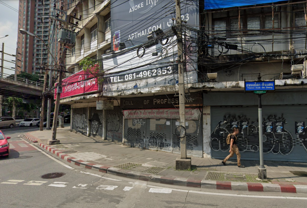 Land for sale in Asoke-Din Daeng. Not more than 500 meters from Asoke MRT!! Area 95 square meters Selling price only 45,000,000 baht!! Suitable for office, hotel, commercial use. or invest in the futu