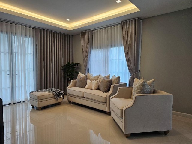 HR1260 2-story detached house for rent, Setthasiri Project. Bangkok-Pathum Thani Near Flora Ville golf course Rent 120,000 baht per month, negotiable, 2 months security deposit, 1 month advance. Contact: Khun Phon Tel. Contact number, Contact number (You can add Line at this number) ID Line : henghengpaula Announcement code HR1260 2-story detached house for rent, Setthasiri Project. Bangkok-Pathum Thani Near Flora Ville golf course - Area 72 sq m., usable area 252 sq m. -4 bedrooms, 4 bathrooms -There is a maids room. and maids bathroom - Air conditioning in every room - Parking for 2 cars in the house with EV Charger -The front of the house faces north. -Choose to use furniture and electrical appliances. Excellent quality Special features of the house A rare view. Looking out the window you can see the beautiful gardens of the golf course. Its like being in the middle of a lush green valley of Europe. The new house is ready to move in, smells great. The owner of the house is very kind. Complete furniture and electrical appliances There is a lawn where you can plant trees/parties. Dogs and cats can be raised (we reserve the right to consider on a case-by-case basis) Project facilities Clubhouse With private meeting room Fitness swimming pool park Educational Playground CCTV (CCTV) 24 hour security system from LIV24 Location: Bangkok-Pathum Thani Road, Bang Khu Wat Subdistrict, Mueang Pathum Thani District, Pathum Thani Province 12000 PL.RealEstate Broker
